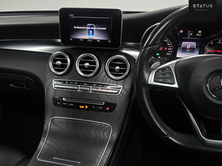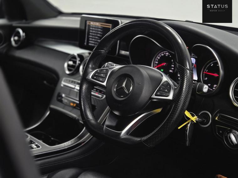 Mercedes-Benz GLC 220D 4Matic AMG Line Premium 5-dr 9G-Tronic. This vehicle has been well maintained with service stamps in book. This vehicle is finished in a stunning black paintwork with black-on-black leather interior. This vehicle has just been recently serviced and health checked to ensure every aspect of this car is in working order, passing with no faults. This car has been very well maintained and drives brilliantly. This vehicle also has a very good specification with many optional extras, adaptive headlights, sunroof, Bluetooth connectivity, cruise control, DAB radio, heated seats, daytime running LED lights, electric heated and folding side mirrors, drive mode selector, electric windows all around, navigation system, phone connectivity, and many many more options too long to list! This car is a must see!