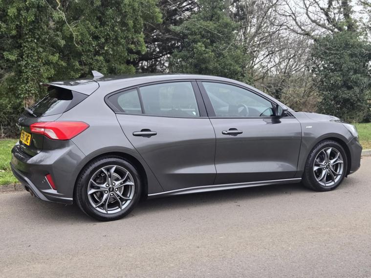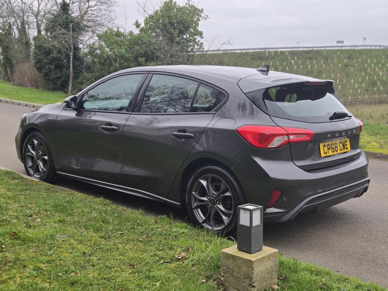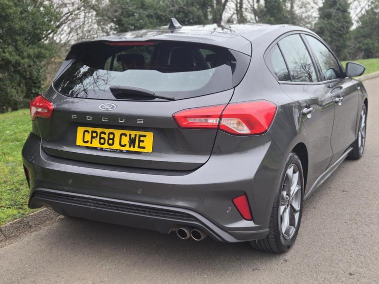 We are very proud to offer this stunning Ford Focus 1.0T EcoBoost ST-Line Hatchback, a perfect blend of style, performance, and practicality. With its sleek grey exterior and sporty design, this 2018 model is sure to turn heads wherever you go. Under the bonnet, you’ll find a peppy 1.0-litre engine that delivers an impressive 123 bhp, allowing you to accelerate from 0 to 60 mph in just 10 seconds. With a top speed of 124 mph, this hatchback is not only fun to drive but also efficient, boasting a fuel consumption of 48.7 mpg.