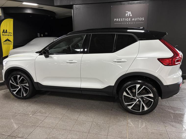Here for sale at Prestige Autos Surrey, we have this wonderful Volvo XC40 2.0 T4 R-Design Pro SUV. This particular example is finished in Volvo’s desirable ‘Crystal White’, paired with a lovely Panoramic Roof and sun roof. This car comes with a Full Dealership Service history. Having had a service done every year, by Volvo themselves.