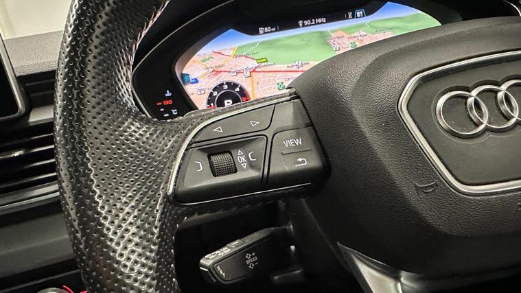 - High Multi-function 3-Spoke Leather Steering Wheel with Grips in Perforated Leather and S Badging with Gear-Shift Paddles