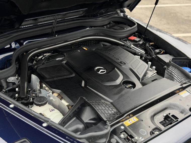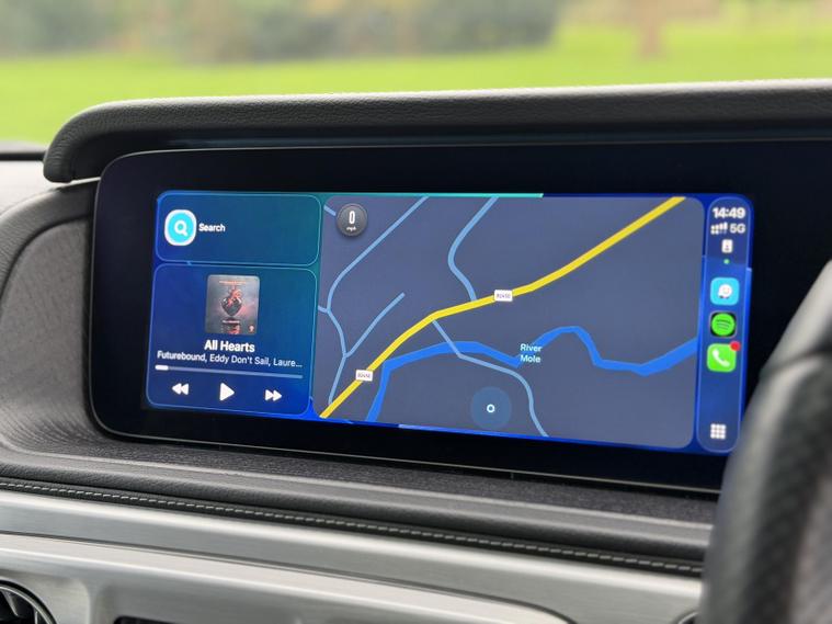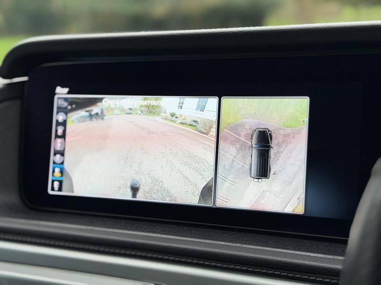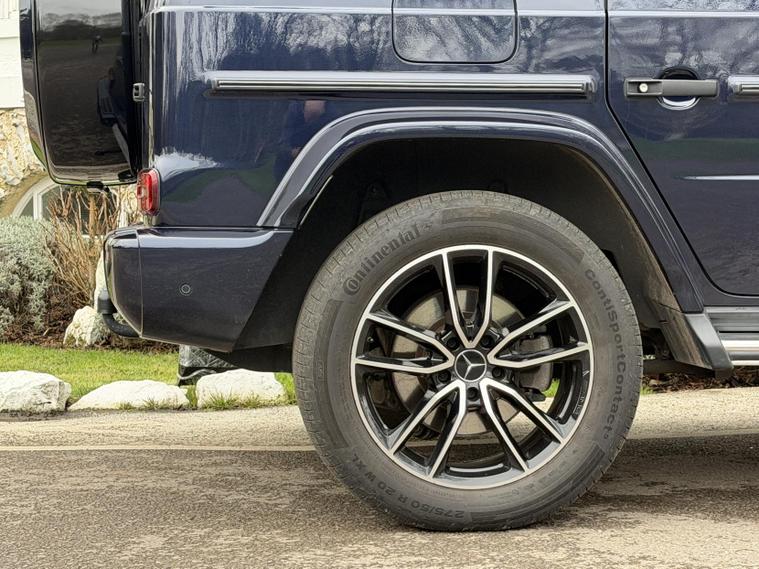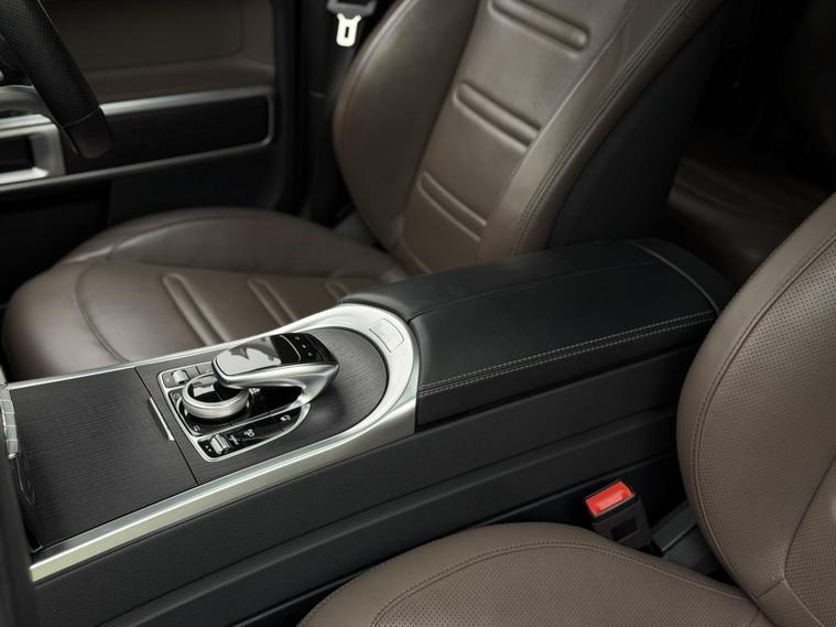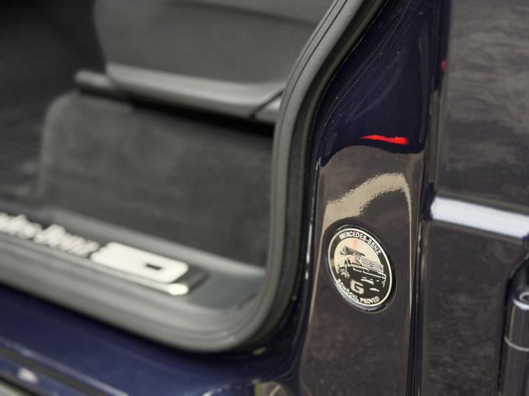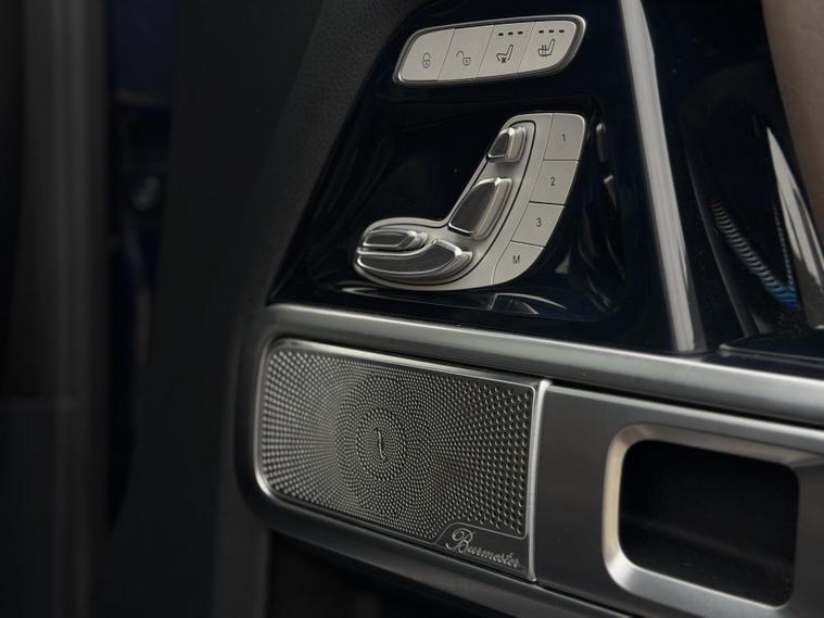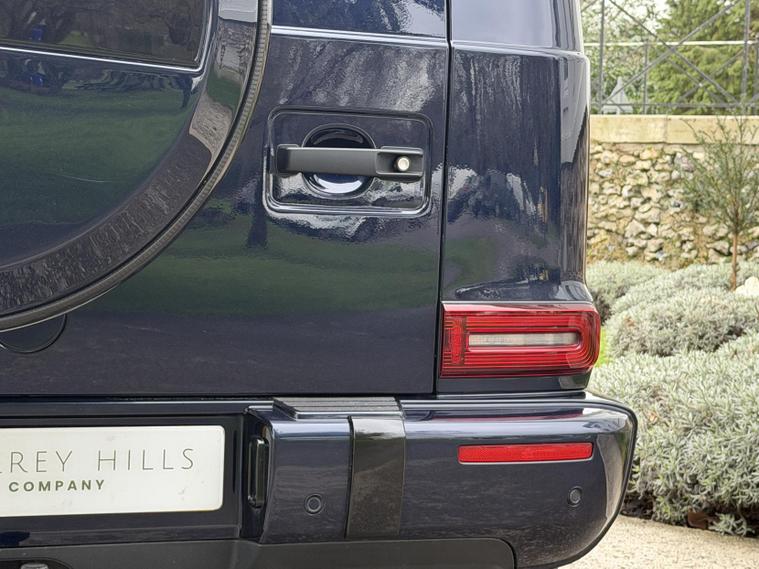 This example is specified as AMG Line Premium Plus and further enhanced with desirable factory options. The Night Package replaces exterior chrome with gloss black detailing, including darkened grille, trim elements and wheel finishes, giving the car a more purposeful appearance. Cavansite Blue metallic is one of the strongest colours for the G-Class, pairing particularly well with the Exclusive Nappa Leather interior in Macchiato Beige and Espresso Brown, which brings extended leather across the dashboard.