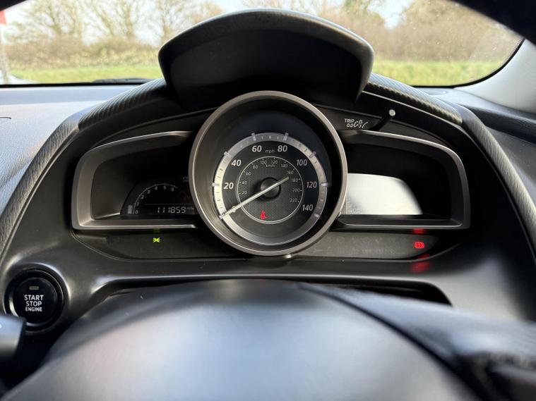 Under the hood, the 1.5-litre engine delivers a spirited 89 bhp, allowing for an impressive acceleration of just 9.4 seconds to 60 mph. With a top speed of 114 mph, this Mazda2 is not only fun to drive but also efficient, achieving an outstanding fuel consumption of 62.8 mpg. Plus, with an annual road tax of only £20 and a low insurance group rating of 16, this vehicle is as economical as it is enjoyable.