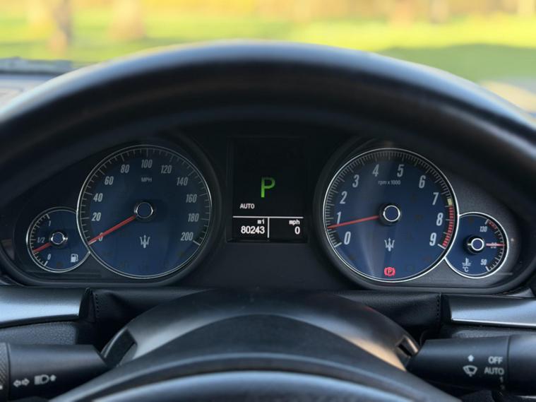 Factory options total over £6, 500 and include BOSE sound system, front parking sensors to complement the rear park distance control, 20 inch Birdcage alloy wheels in silver, red brake calipers, Front Seat Comfort Pack with extended electric adjustment and lumbar support, MC design aluminium pedals with footrest, Grigio Touring Light Silver metallic paint and Poltrona Frau Nero leather with Bordeaux stitching. This is a well specified and correctly configured example.