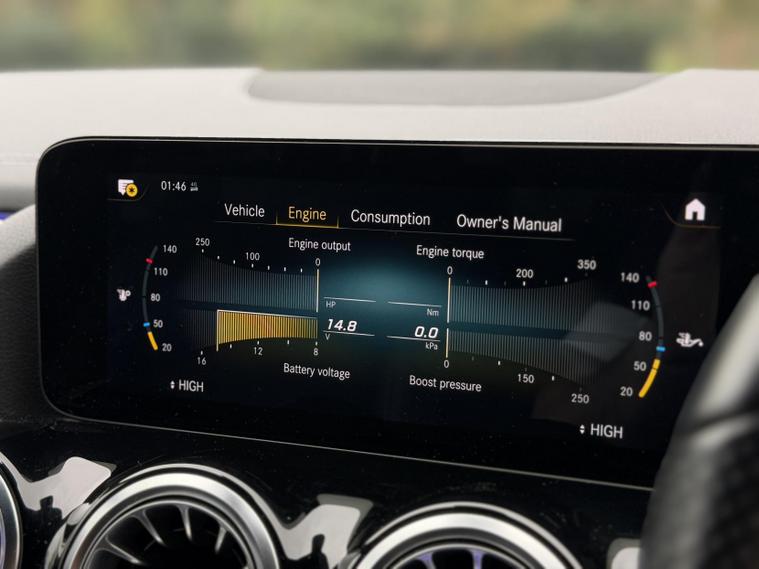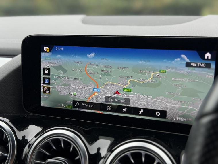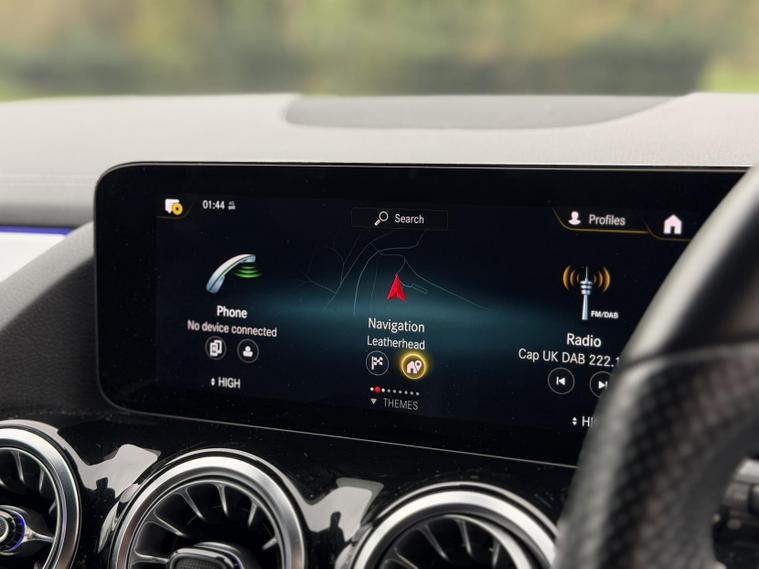 Inside, the Executive specification brings the MBUX multimedia system with 10.25 inch touchscreen, hard-disc navigation with live traffic services, smartphone integration with Apple CarPlay and Android Auto, heated front seats, THERMOTRONIC two-zone climate control, 64-colour ambient lighting and a multifunction Nappa leather sports steering wheel with galvanised shift paddles. The Seat Comfort Package and 40-20-40 split rear seats make it practical as a family car without compromising on finish.