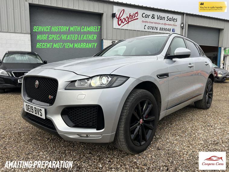 This Jaguar F Pace has been absolutely cherished, has never wanted for anything and is a credit to its previous owner! In stunning condition inside and out and has been very well looked after with an excellent service history including a very recent timing belt replacement. The car is also complete with 2 keys and will be leaving us with a very recent MOT and supported by a twelve month warranty and twelve months breakdown cover (warranty can be extended to 48m at an additional cost). Huge specification with 20in alloy wheels, parking sensors with reversing camera, privacy glass, full leather interior with heated front and rear seats, touch screen display with Carplay and sat nav, sliding panoramic roof, detatchable towbar and so much more
