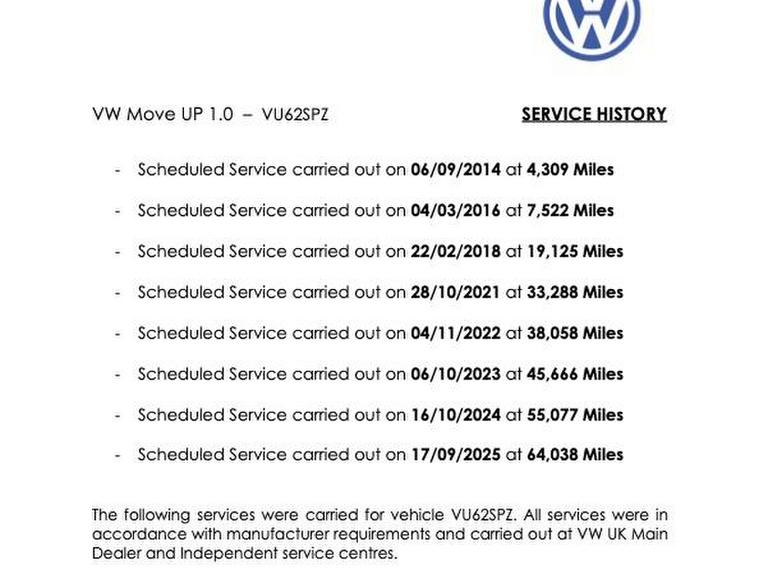 Here at Robert Colthart Car Sales Ltd, we are excited to offer this fantastic Volkswagen up! 1.0 Move up! Hatchback. With its sleek design and impressive performance, this 2012 model is the perfect blend of style and practicality. Boasting a 1.0-litre petrol engine that delivers 59 bhp, this hatchback accelerates from 0 to 60 mph in just 14.4 seconds, making it a zippy companion for city driving and beyond. With a top speed of 99 mph, you can enjoy a spirited drive while still being economical, achieving an impressive 62.8 mpg. Plus, with only 64, 000 miles on the clock and a low annual road tax of just £20, this vehicle is not only budget-friendly but also ULEZ compliant, making it an excellent choice for urban dwellers.
