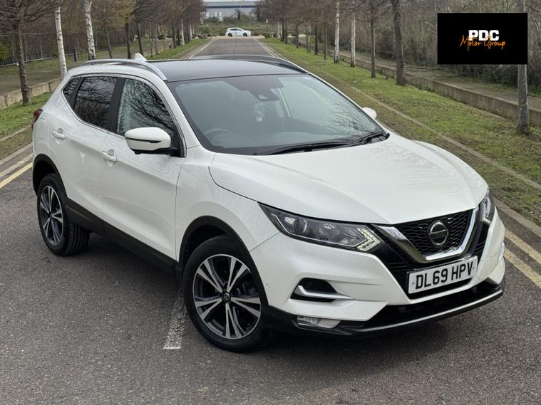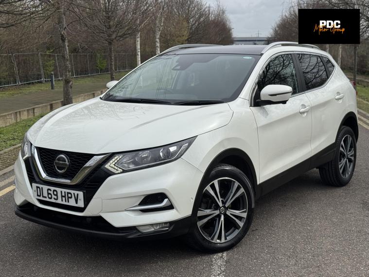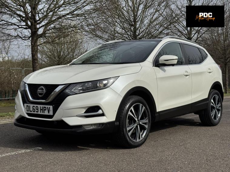Nissan Qashqai 1.3 DIG-T N-Connecta SUV 5dr Petrol DCT Auto Euro 6, HPI CLEAR, ULEZ Compliant. This vehicle has been well maintained with full service history from Nissan Dealer in book. This vehicle is finished in a stunning white metallic paintwork with contrasting black interior. This vehicle has just been recently serviced and health checked. This car has been well maintained and drives well. This vehicle also has a very good specification with many optional extras, automatic headlights, lane keep assist, 360 surround camera, auto parking pilot mode, blind spot assist, Bluetooth connectivity, navigation, full size panroof, cruise control, DAB radio, daytime running LED lights, electric windows all around, phone connectivity, and many many more options too long to list! This car is a must see!