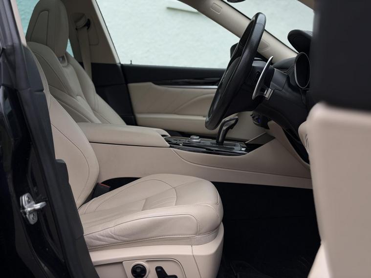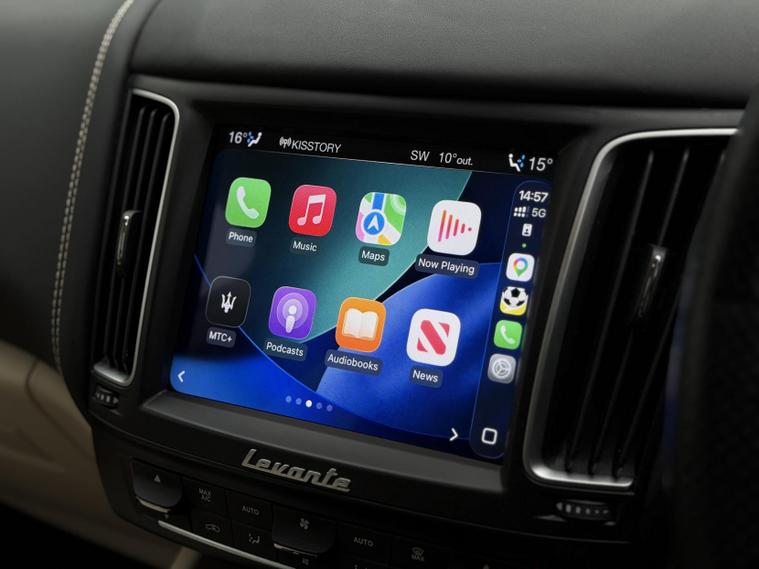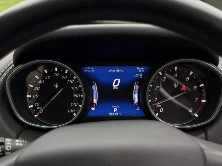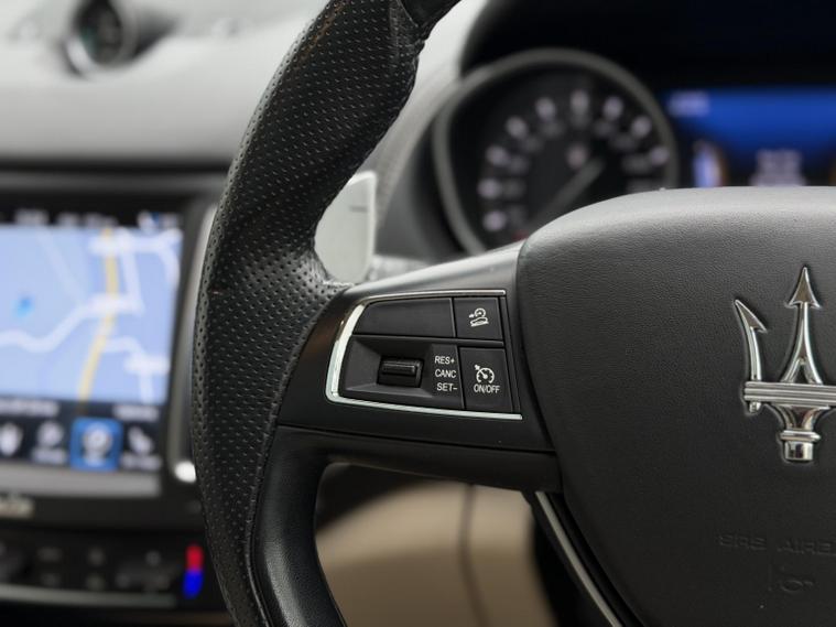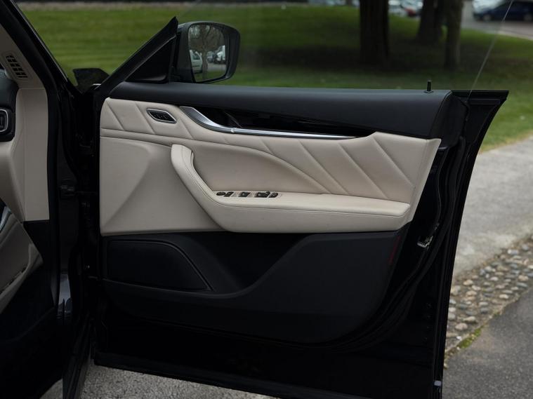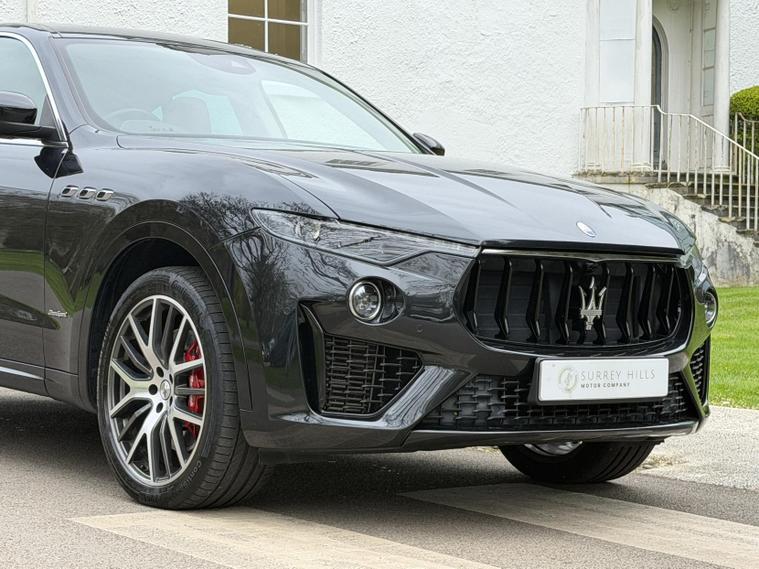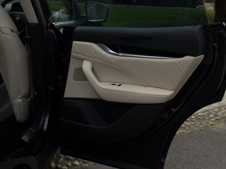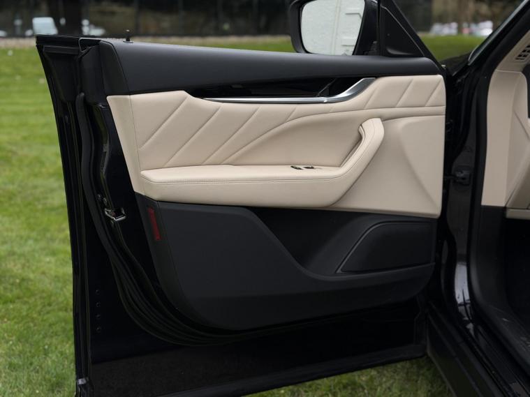 This example also benefits from the Nerissimo exterior treatment, red brake calipers, air adaptive suspension with Skyhook electronically variable damping, soft close doors, keyless entry and go, active cruise control, front and rear parking sensors, power tailgate, sports seats with driver memory, aluminium shift paddles, dual zone climate control, MTC Plus infotainment, and the Maserati design clock.