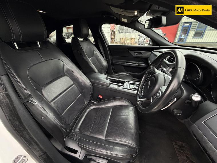 Introducing the Jaguar XF 2.0d R-Sport Saloon, a stunning blend of performance, luxury, and cutting-edge technology that redefines your driving experience. This 2018 model, with a sleek white exterior, boasts a powerful 2.0-litre diesel engine that delivers an impressive 161 bhp and 280 lbs/ft of torque, allowing you to accelerate from 0 to 60 mph in just 8.6 seconds. With a top speed of 132 mph and a remarkable fuel consumption of 48.5 mpg, this saloon is not only exhilarating to drive but also efficient, making it the perfect companion for both city commutes and long journeys.