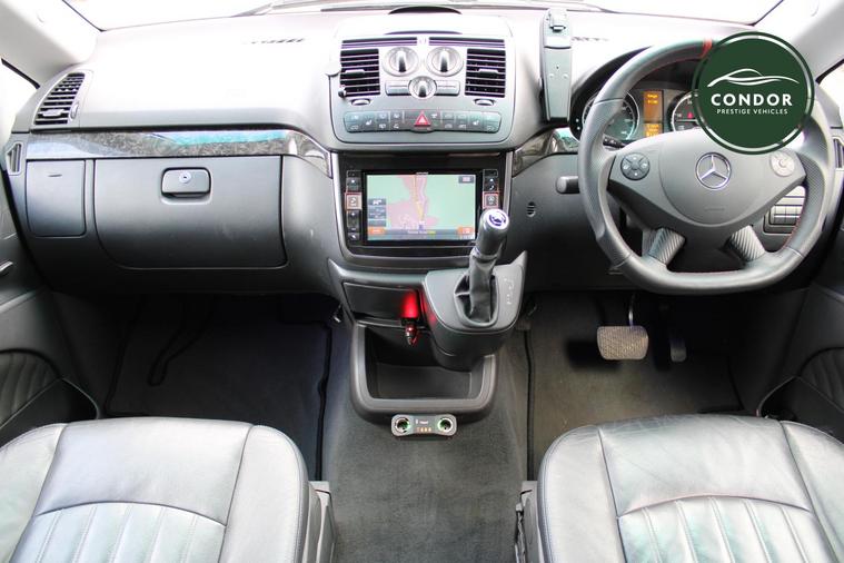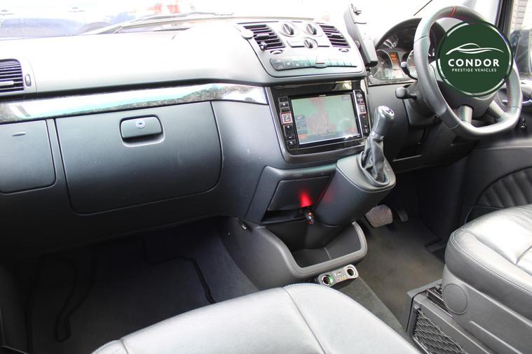 The interior of this Viano is enhanced by the luxurious Lugano Leather upholstery in Anthracite. This high-quality leather not only adds a touch of elegance but also provides durability and ease of maintenance, making it a practical choice for everyday use. The sophisticated finish elevates the overall aesthetic of the vehicle, creating a refined atmosphere for all passengers.