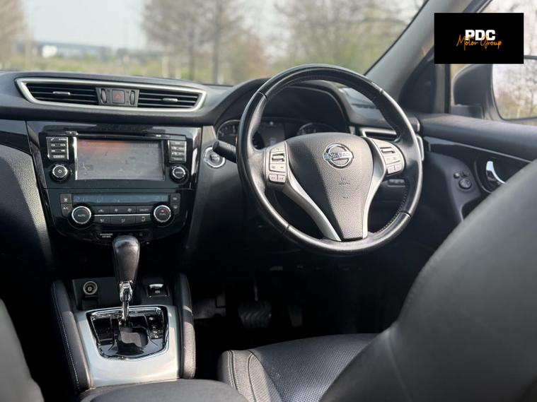 NISSAN QASHQAI 1.6 TEKNA XTRONIC. HPI CLEAR. 2 KEYS. FULL SERVICE HISTORY, JUST BEEN SERVICED. FULL PAN ROOF. HEATED, ELECTRIC LEATHER SEATS. KEYLESS ENTRY. CRUISE CONTROL. DUAL CLIMATE CONTROL. LANE ASIST. ELECTRIC FOLDING MIRRORS. ALL ROUND ELECTRIC WINDOWS. FRONT & REAR PARKING SENSORS. 360 CAMERA. CURB CAMERA. SAT NAV. MULTIFUNCTIONAL STEERING WHEEL. ISOFIX. ALL OUT VEHICLES COME WITH A GOLD STANDARD WARRANTY, WHICH CAN BE EXTENTED. FINANCE AVAILABLE. CALL NOW TO BOOK YOUR FREE TEAT DRIVE.