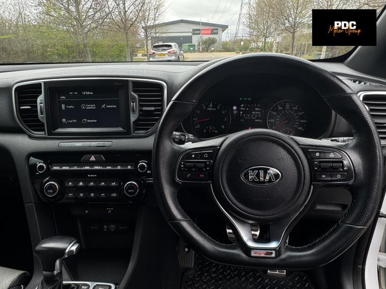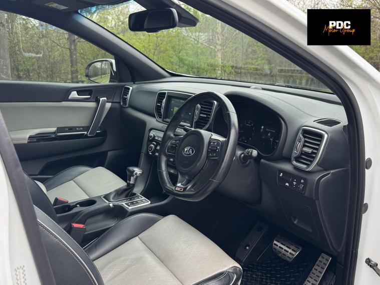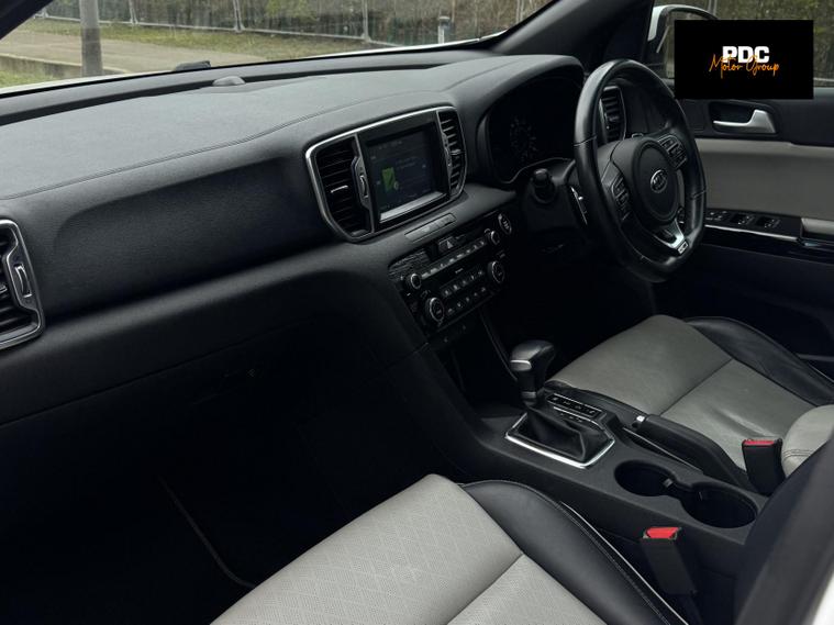 KiaSportage 1.6 T-GDi GT-Line SUV 5dr Petrol DCT AWD Euro 6 (174 bhp), HPI CLEAR, ULEZ Compliant. This vehicle has been well maintained with full dealer service history in book. This vehicle is finished in a stunning white metallic paintwork with black and cream two tone leather interior. This vehicle has just been recently serviced and health checked. This car has been well maintained and drives well. This vehicle also has a very high specification with many optional extras, automatic headlights, front and rear heated seats, lane keep assist, Bluetooth connectivity, navigation, touchscreen infotainment, cruise control, DAB radio, parking sensors front and rear, reverse view camera, daytime running LED lights, electric windows all around, phone connectivity, and many many more options too long to list! This car is a must see!