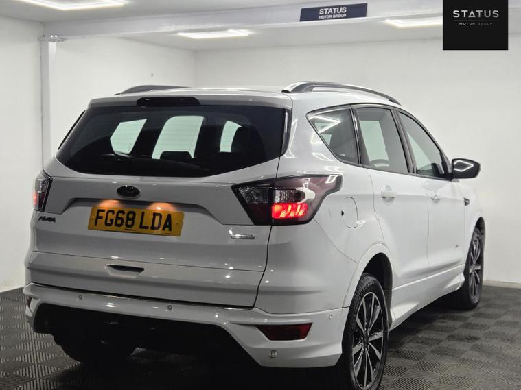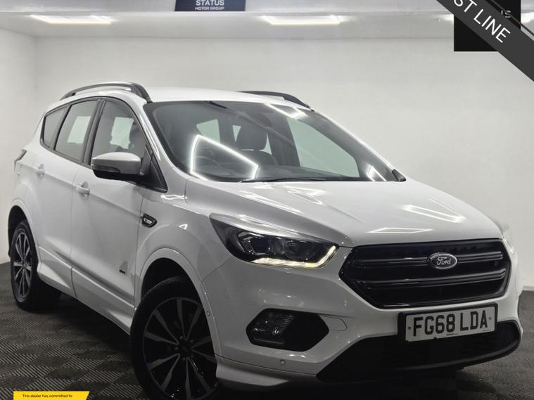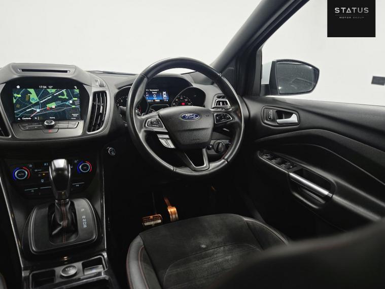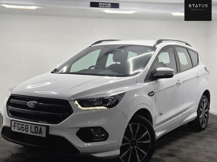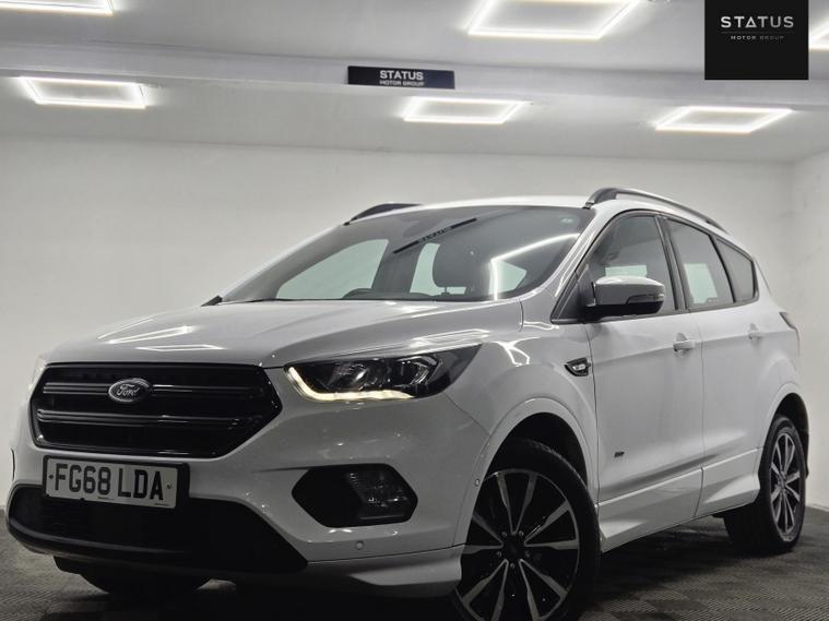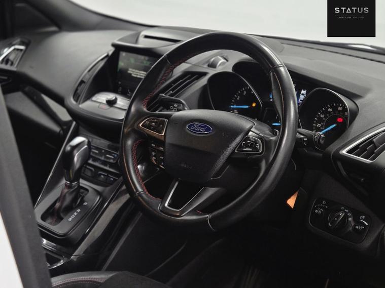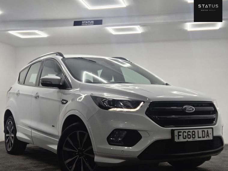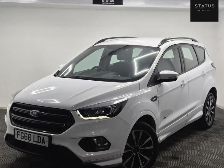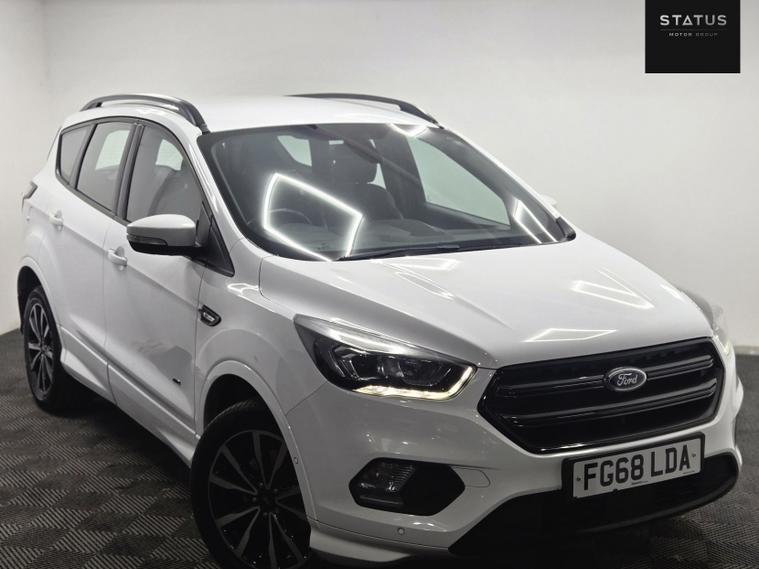 Ford Kuga 1.5 EcoBoost 176 ST-Line 5dr Auto, HPI CLEAR, ULEZ Compliant. This vehicle has been well maintained with service stamps in book. This vehicle is finished in a stunning white metallic paintwork with contrasting black part leather interior. This vehicle has just been recently serviced and health checked to ensure every aspect of this car is in working order, passing with no faults. This car has been very well maintained and drives brilliantly. This vehicle also has a very good specification with many optional extras, adaptive headlights, Bluetooth connectivity, cruise control, DAB radio, daytime running LED lights, electric heated and folding side mirrors, drive mode selector, electric windows all around, navigation system, phone connectivity, and many many more options too long to list! This car is a must see!