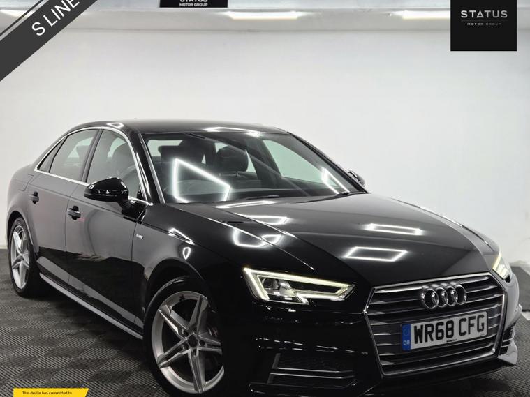 Audi A4 S Line TFSI S-A, HPI CLEAR, ULEZ Compliant. This vehicle has been well maintained with some services. This vehicle is finished in a stunning black metallic paintwork with contrasting black part leather and alcantara interior. This vehicle has just been recently serviced and health checked to ensure every aspect of this car is in working order, passing with no faults. This car has been very well maintained and drives brilliantly. This vehicle also has a very good specification with many optional extras, adaptive headlights, Bluetooth connectivity, cruise control, DAB radio, heated seats, daytime running LED lights, electric heated and folding side mirrors, drive mode selector, electric windows all around, navigation system, phone connectivity, and many many more options too long to list! This car is a must see!