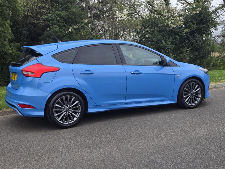 Introducing the Ford Focus 1.0T EcoBoost ST-Line Hatchback, a dynamic blend of style, performance, and practicality. This 2017 model, finished in a striking Rock Metallic blue, is designed to turn heads while offering a comfortable ride for up to five passengers. With a manual transmission and front-wheel drive, this hatchback delivers an engaging driving experience, making it perfect for both city commutes and longer journeys. With a top speed of 120 mph and an impressive fuel consumption of 60.1 mpg, you can enjoy spirited drives without compromising on efficiency. Plus, it’s ULEZ compliant, making it an environmentally friendly choice.