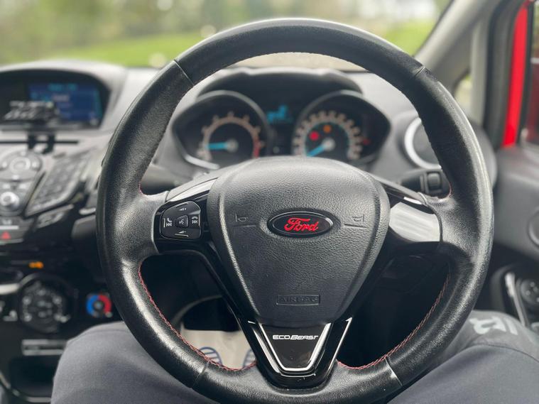 Elevate your driving experience with the Ford Fiesta 1.0T EcoBoost Zetec S, a dynamic hatchback that combines performance, efficiency, and style. With a striking red exterior and a sleek design, this 2016 model is not just a car; it’s a statement. Boasting a powerful 1.0-litre EcoBoost engine that delivers an impressive 138 bhp, this vehicle accelerates from 0 to 60 mph in just 9 seconds, ensuring that every journey is both exhilarating and efficient. With a top speed of 125 mph and a remarkable fuel consumption of 62.8 mpg, the Fiesta is designed for those who crave both performance and economy.