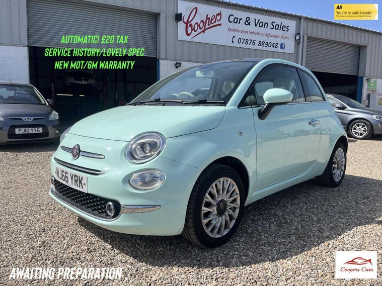 This little Fiat 500 would make the perfect first car! In fantastic condition inside and out, known for their excellent reliability and fuel economy, just £20 a year to tax and ULEZ and CAZ compliant too. This one also benefitting from having the automatic gearbox. Just one previous owner and complete with service history, 2 keys and will be leaving us with a brand new MOT and supported by a six month warranty and twelve months breakdown cover (warranty can be extended to 48m at an additional cost). Lovely specification with alloy wheels, parking sensors, air conditioning, touch screen display with DAB and Bluetooth and much more.