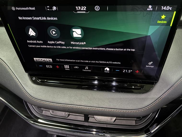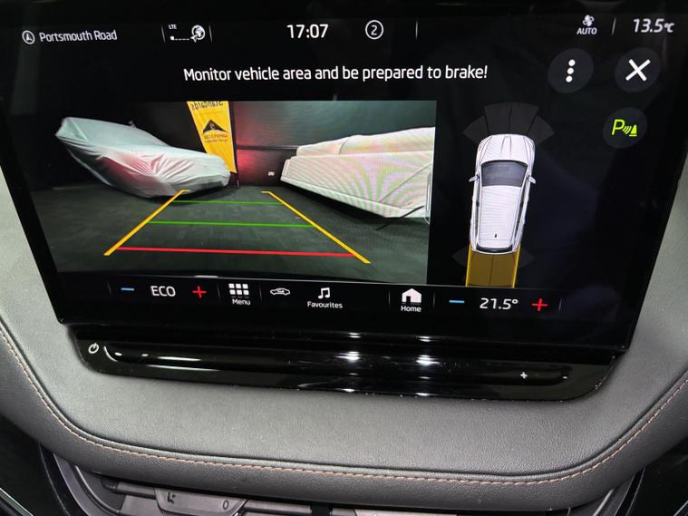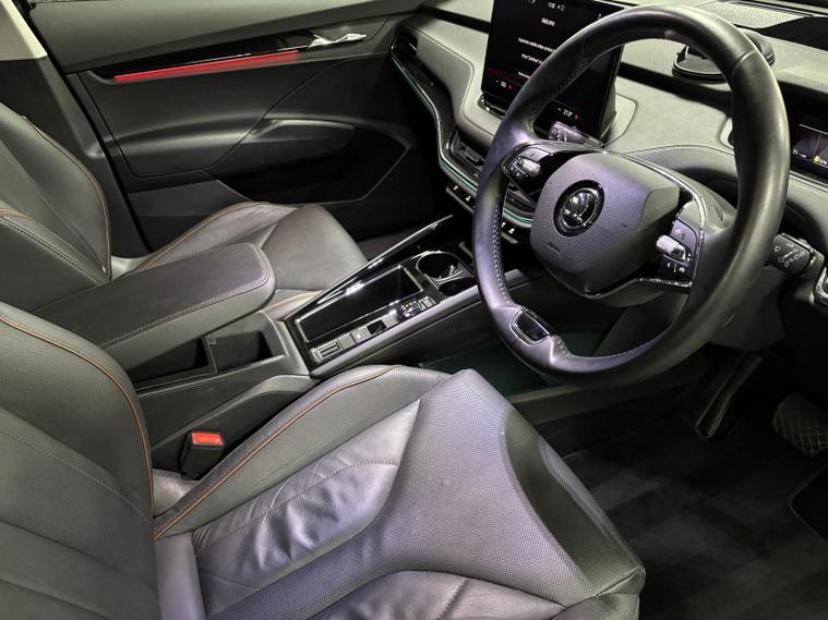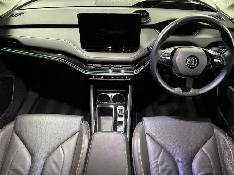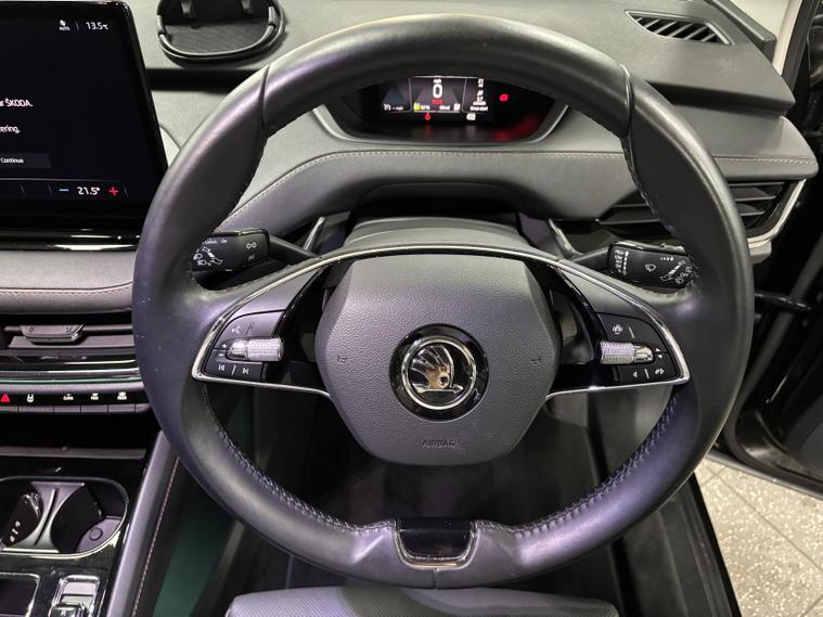 This vehicle also comes with a range of standard features, including: 19-inch alloy wheels, LED headlights, LED daytime running lights, LED rear lights, automatic headlights, rain-sensing wipers, heated and power-adjustable door mirrors, roof rails, rear privacy glass, keyless start, and an electric tailgate (on most UK-spec models), cloth upholstery, heated front seats, a two-spoke multifunction steering wheel, dual-zone climate control, ambient lighting, a fully digital 5.3-inch driver display, and a large central touchscreen infotainment system, split-folding rear seats, multiple USB-C ports, wireless phone charging, and generous storage throughout the cabin. satellite navigation, Apple CarPlay/Android Auto, Bluetooth connectivity, DAB radio, voice control, and Škoda’s “Simply Clever” features such as umbrella storage and boot hooks, adaptive cruise control, lane assist, front assist with emergency braking, parking sensors, rear-view camera, hill hold assist, tyre pressure monitoring, ISOFIX mounting points, and multiple airbag sand many more!