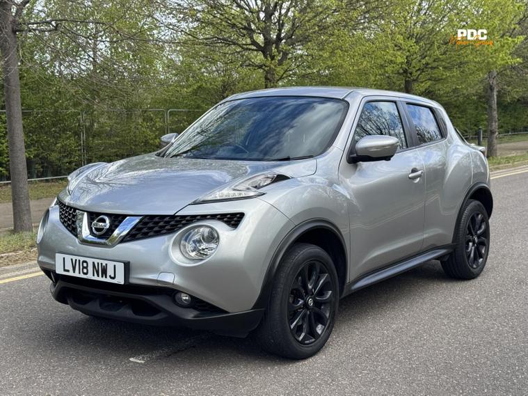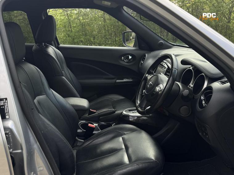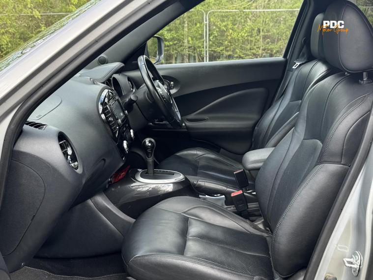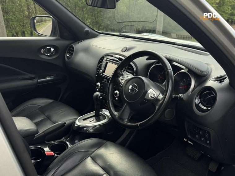Nissan Juke 1.6 Tekna SUV 5dr Petrol XTRON Euro 6, HPI CLEAR, ULEZ Compliant. This vehicle has been well maintained with service history to reflect. This vehicle is finished in a stunning silver metallic paintwork with black full leather interior. This vehicle has just been recently serviced and health checked. This car has been well maintained and drives well. This vehicle also has a very high specification with many optional extras, automatic headlights, lane keep assist, 360 surround camera, full leather seats, heated seats, blind spot monitoring, Bluetooth connectivity, navigation, touchscreen infotainment, cruise control, DAB radio, parking sensor, daytime running LED lights, electric windows all around, phone connectivity, and many many more options too long to list! This car is a must see!