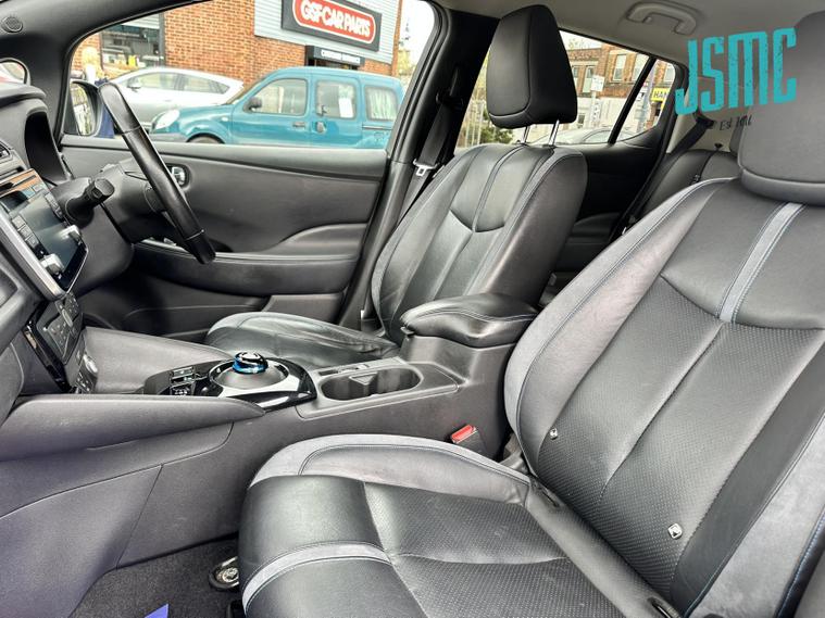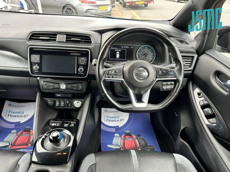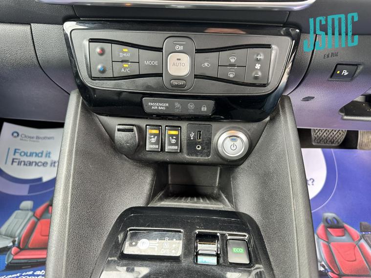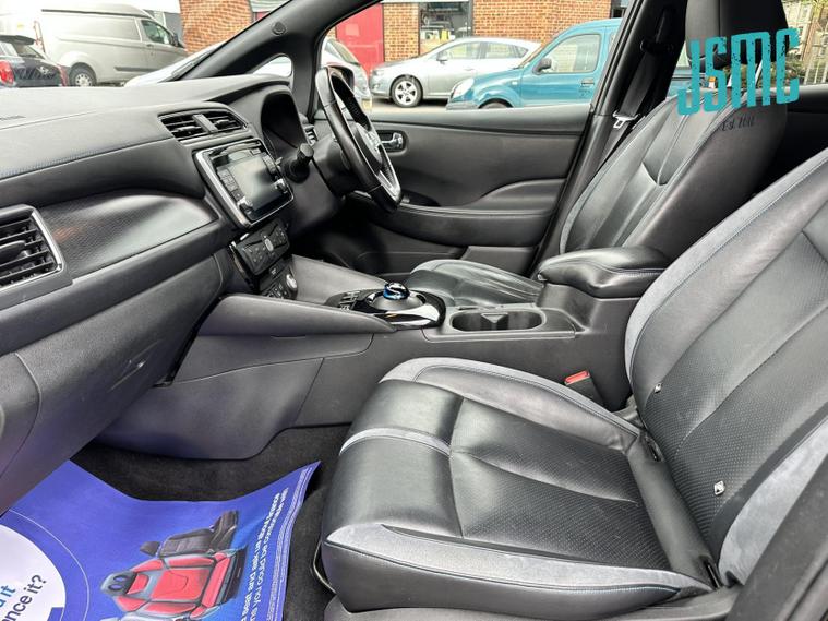 Inside, the Nissan Leaf 40kWh Tekna features luxurious leather upholstery with Ultra Suede inserts in black, creating an inviting and comfortable atmosphere for all passengers. This premium interior not only elevates the overall driving experience but also provides durability and ease of maintenance, ensuring that your vehicle remains looking its best for years to come. The spacious cabin comfortably seats five, making it an ideal choice for families or those who frequently travel with friends.