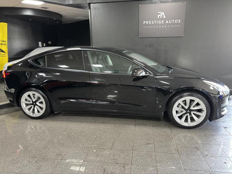 Here for sale at Prestige Autos Surrey, we have this 2021 Tesla Model 3 (Dual Motor) Long Range Saloon. This specific example comes in Tesla’s desirable “Solid Black”. Impressive Tesla Model 3 Long Range AWD offering up to 360 miles of range (WLTP), with rapid performance and excellent efficiency. Dual Motor all-wheel drive, premium tech, and Tesla’s renowned Supercharger network make this a superb all-electric saloon.