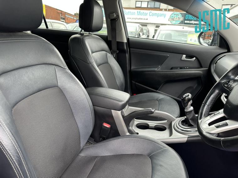 The Part Cloth and Leather upholstery in black is another fantastic feature that elevates the interior of the Sportage. This combination offers the perfect balance of comfort and luxury, providing a plush seating experience while remaining durable and easy to maintain. The stylish design adds a touch of elegance to the cabin, making every journey feel special, whether you're commuting to work or heading out on a weekend getaway.