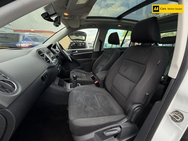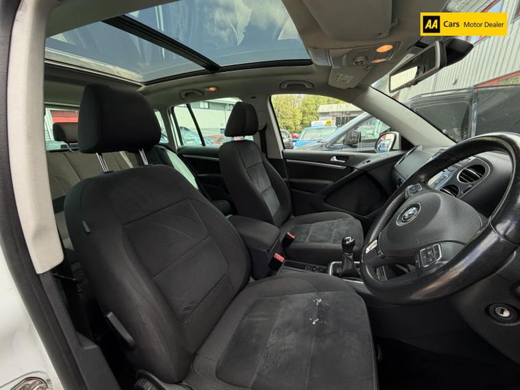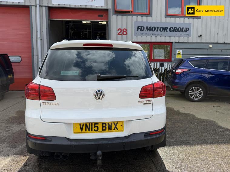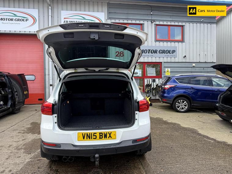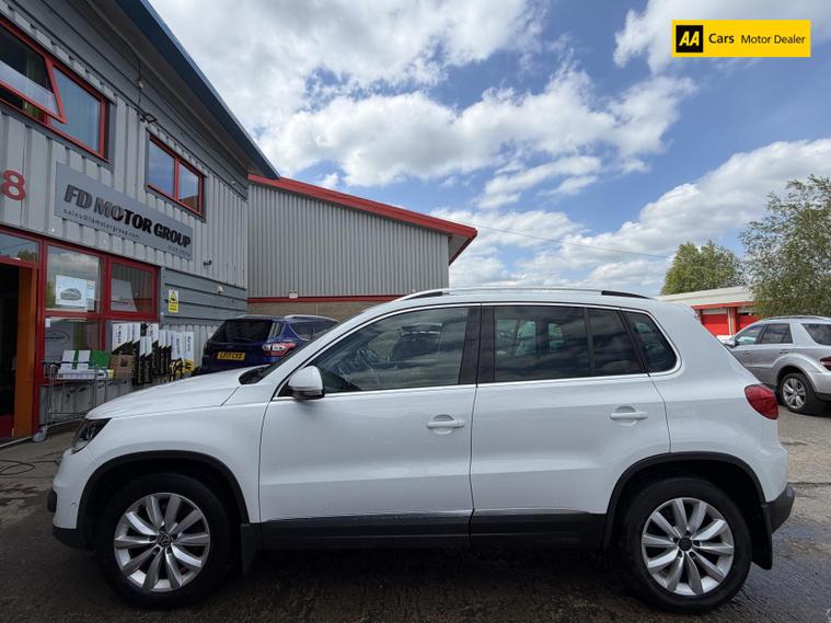 Introducing the stunning Volkswagen Tiguan 2.0 TDI BlueMotion Tech Match SUV, a perfect blend of style, performance, and practicality. This 2015 model, finished in a sleek Pure White, is designed to turn heads while providing a comfortable and spacious ride for up to five passengers. With a robust 2.0-litre diesel engine delivering 138 bhp and an impressive torque of 320 lbs/ft, this SUV is ready to tackle any adventure with ease. The manual transmission and four-wheel drive system ensure a dynamic driving experience, whether you're navigating city streets or exploring the great outdoors. With a top speed of 116 mph and the ability to accelerate from 0 to 60 mph in just 10.2 seconds, the Tiguan is as thrilling as it is practical. Plus, with a fuel consumption of 48.7 mpg, you can enjoy the journey without breaking the bank at the pump.