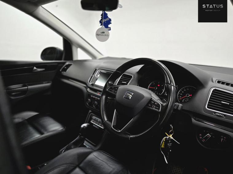 SEAT Alhambra Xcellence TDI S-A, ULEZ Compliant. This vehicle has been well maintained with service stamps in book. This vehicle is finished in a stunning grey metallic paintwork with contrasting black leather interior. This vehicle has just been recently serviced and health checked to ensure every aspect of this car is in working order, passing with no faults. This car has been very well maintained and drives brilliantly. This vehicle also has a very good specification with many optional extras, panroof, carplay, adaptive headlights, Bluetooth connectivity, cruise control, DAB radio, heated seats, daytime running LED lights, electric heated and folding side mirrors, drive mode selector, electric windows all around, navigation system, phone connectivity, and many many more options too long to list! This car is a must see!