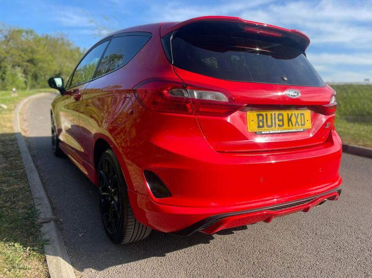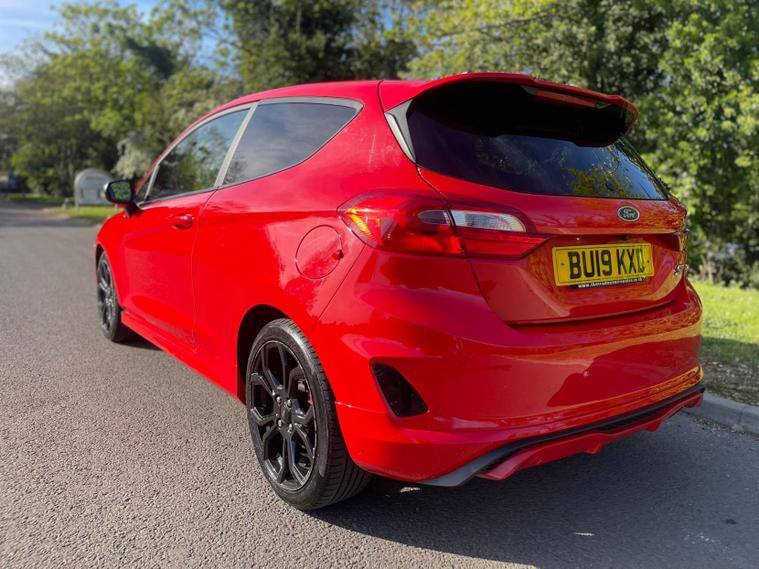 Here at Zh Autos, we are excited to offer this striking 2019 Ford Fiesta 1.0T EcoBoost GPF ST-Line Hatchback. Finished in a vibrant red, this stylish and compact hatchback is designed to deliver an exhilarating driving experience while maintaining impressive fuel efficiency. With a top speed of 113 mph and the ability to accelerate from 0 to 60 mph in just 10.6 seconds, this vehicle is perfect for those who crave performance without compromising on practicality. Accommodating up to five passengers, it features three doors and a spacious interior, making it an ideal choice for both city driving and longer journeys. With a mileage of 61, 000 miles and a long MOT, this Ford Fiesta is ready to hit the road.