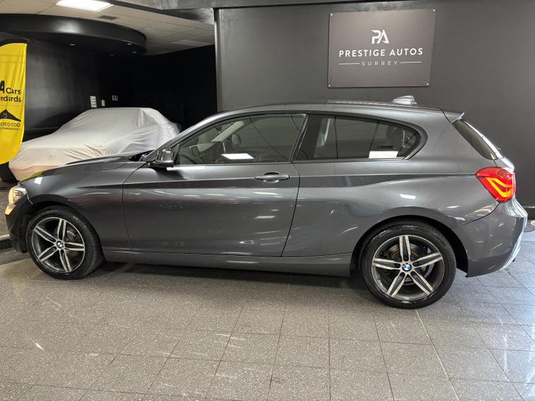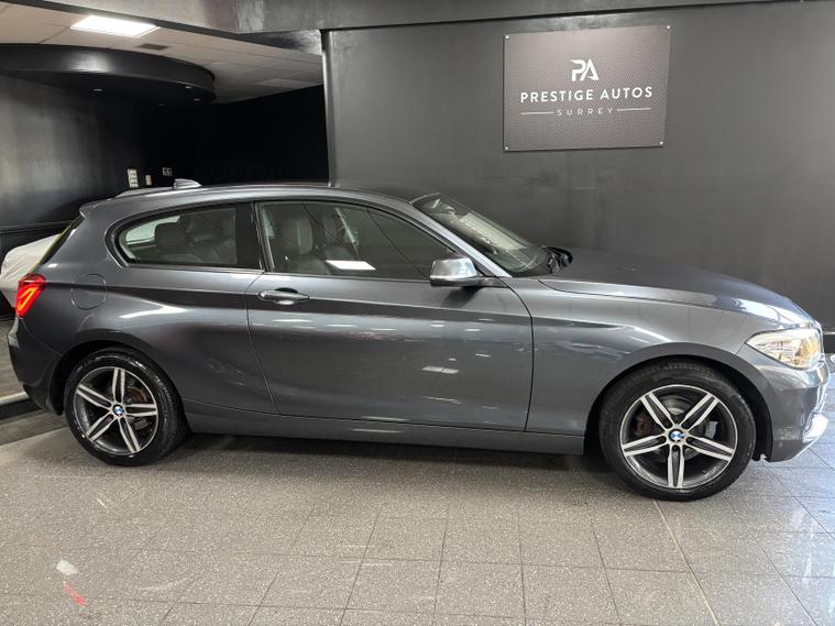 Here for sale at Prestige Autos Surrey, we have this 2016 BMW 1 Series 1.5 118i Sport Hatchback . This specific example comes in BMWs desirable “Mineral Grey”. This BMW comes with over £2, 000 of optional extras, including luxurious Dakota black leather upholstery, stylish 17-inch Light Star Spoke alloy wheels, high-gloss black interior trim with Oxide Silver finisher, and enhanced Bluetooth telephone preparation with USB audio interface and voice control, offering a premium feel, improved driving dynamics, and seamless connectivity throughout.