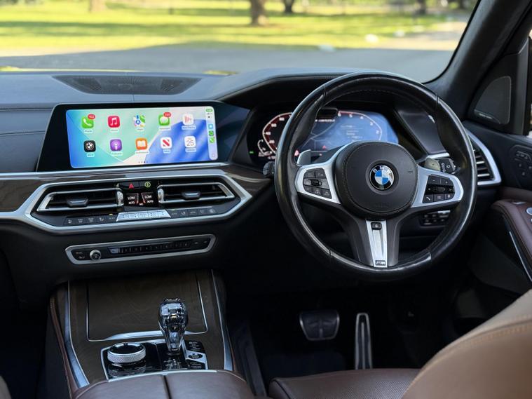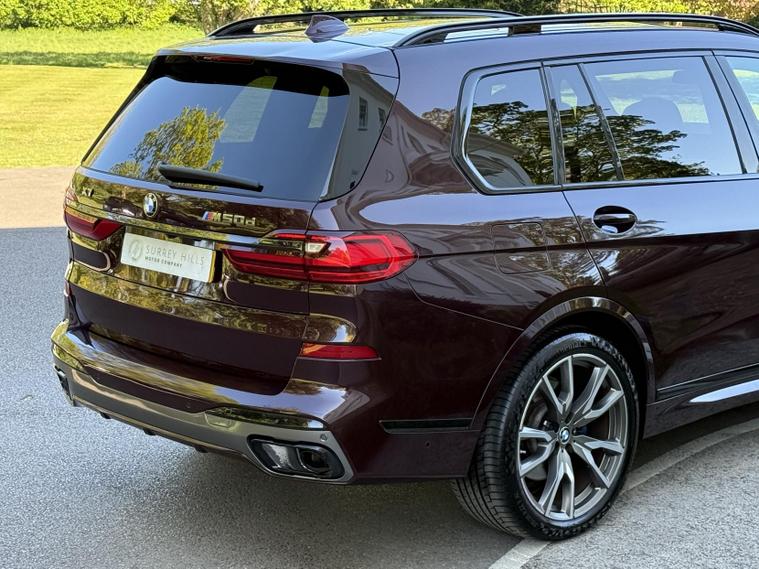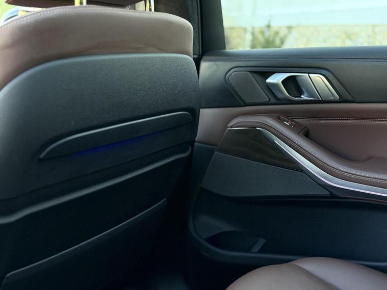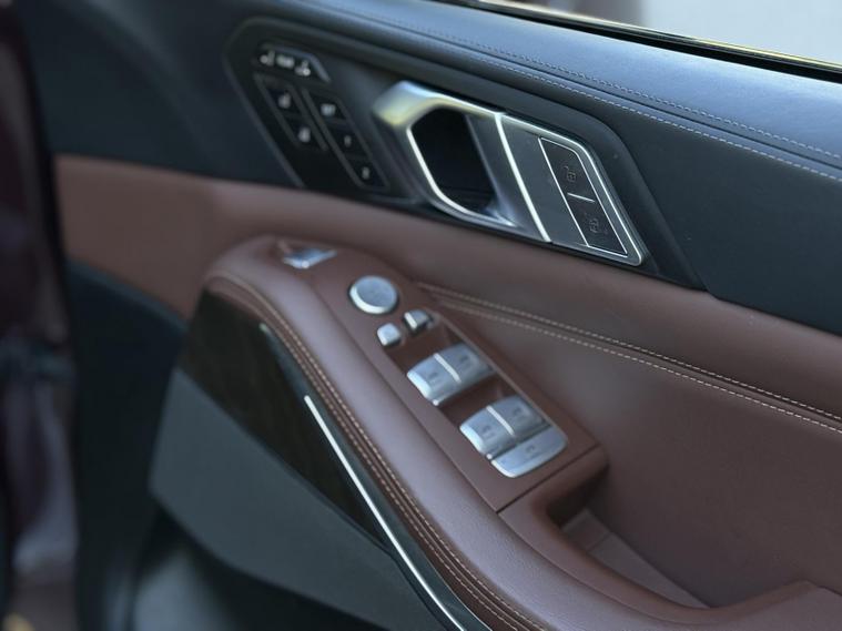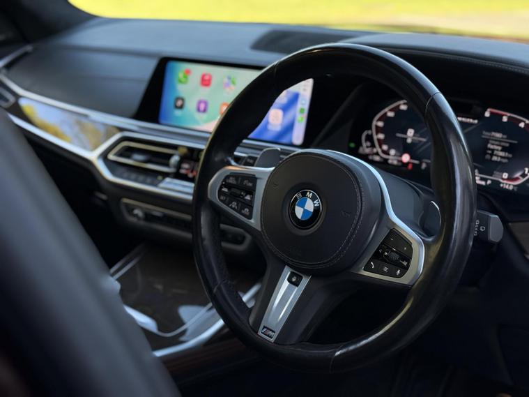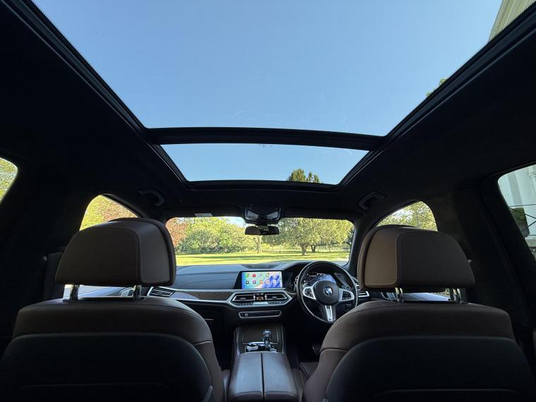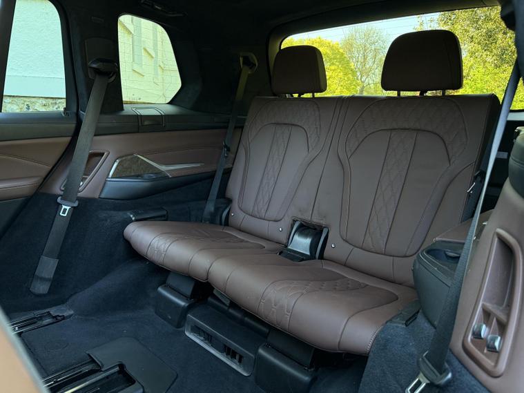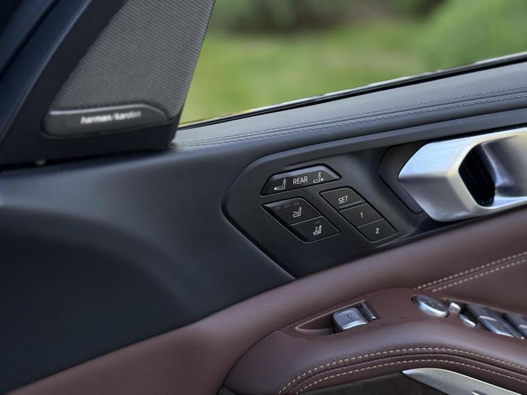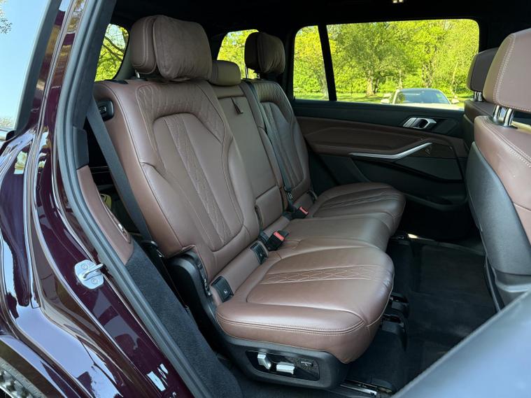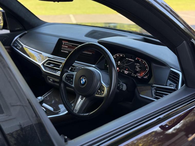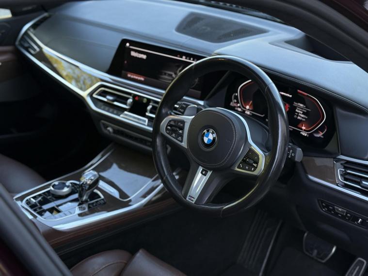 Standard specification includes Harman Kardon audio, panoramic glass sunroof, 22-inch M light alloy wheels, adaptive LED headlights, Parking Assistant Plus with surround view, BMW Live Cockpit Professional, gesture control, soft close doors, four-zone climate control and heated seats across the front and second row, along with full 7-seat configuration.