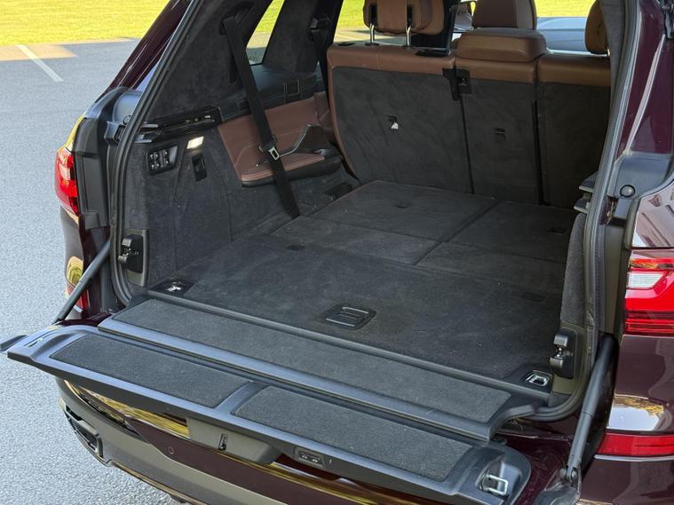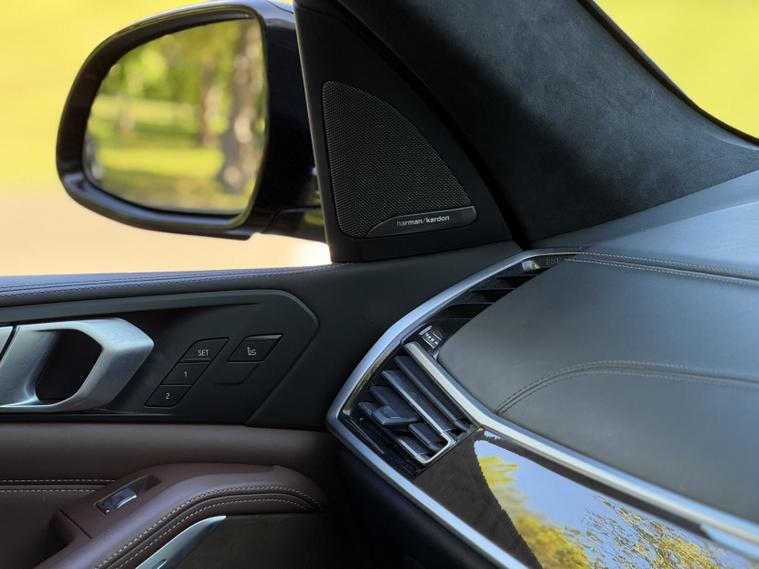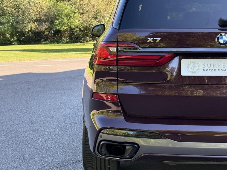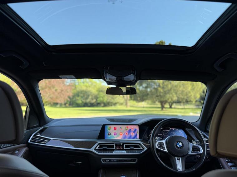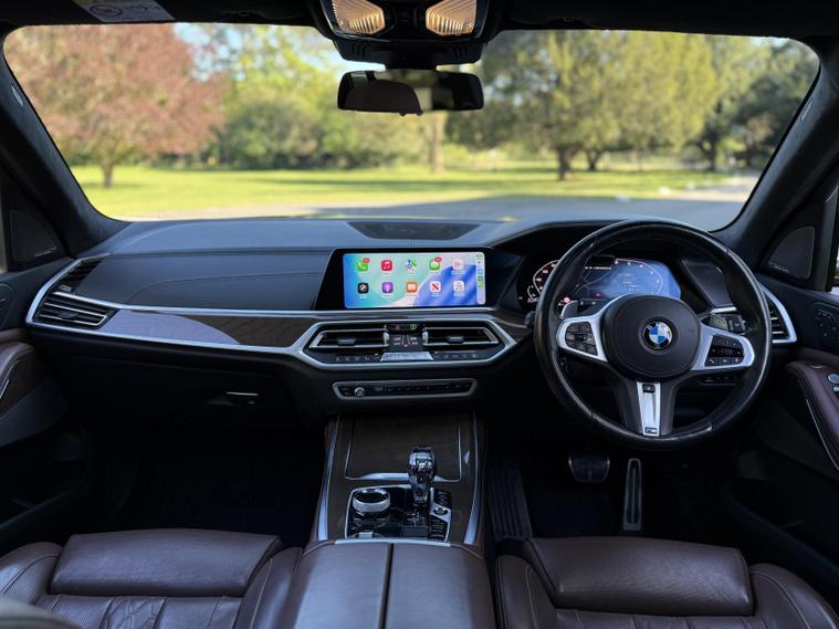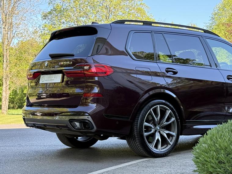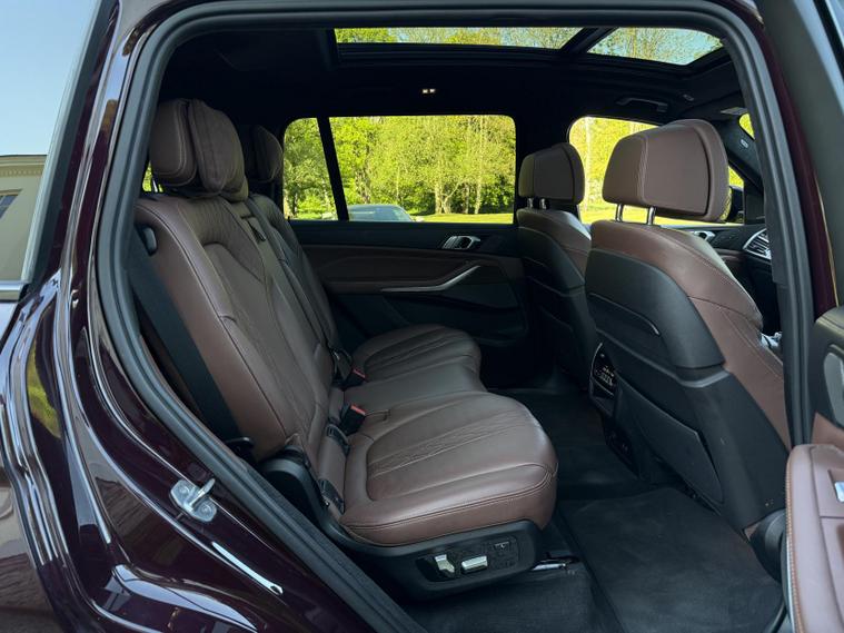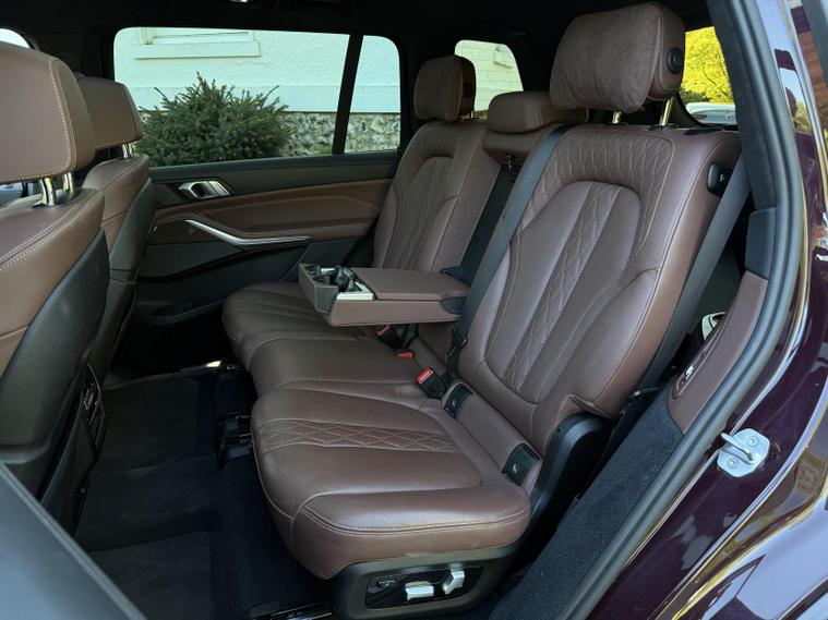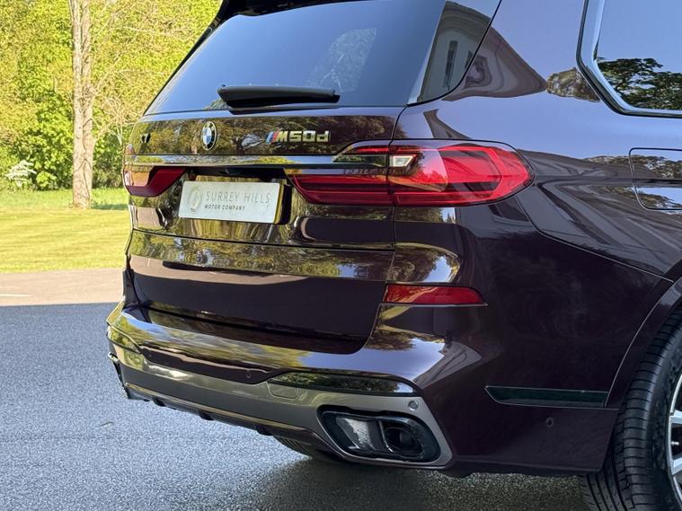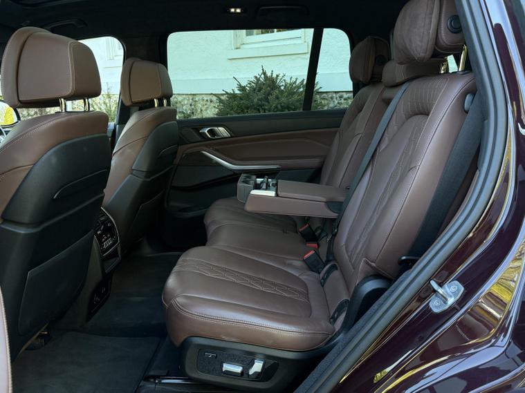 Standard specification includes Harman Kardon audio, panoramic glass sunroof, 22-inch M light alloy wheels, adaptive LED headlights, Parking Assistant Plus with surround view, BMW Live Cockpit Professional, gesture control, soft close doors, four-zone climate control and heated seats across the front and second row, along with full 7-seat configuration.