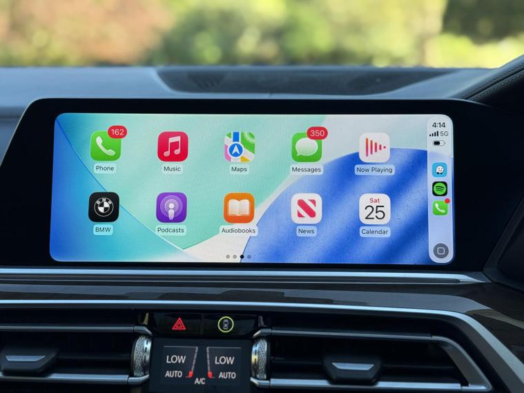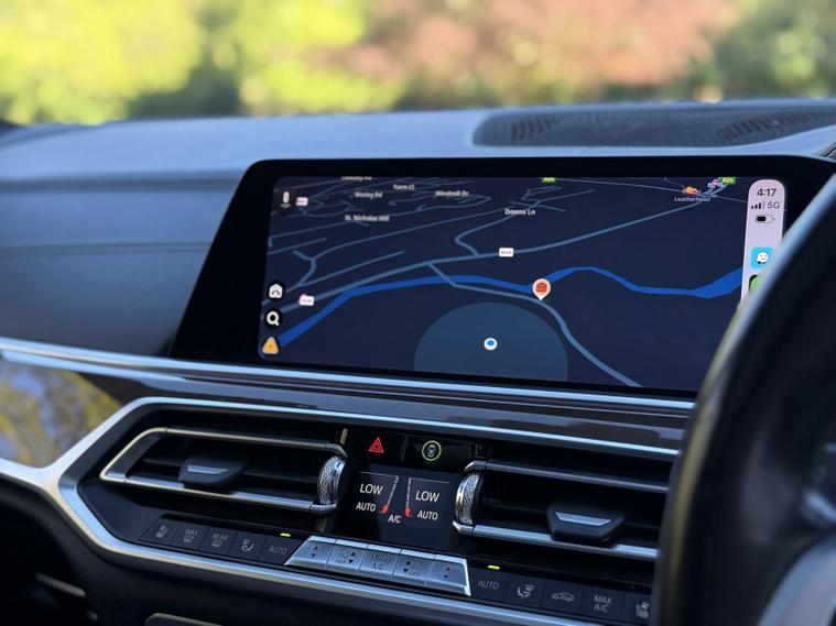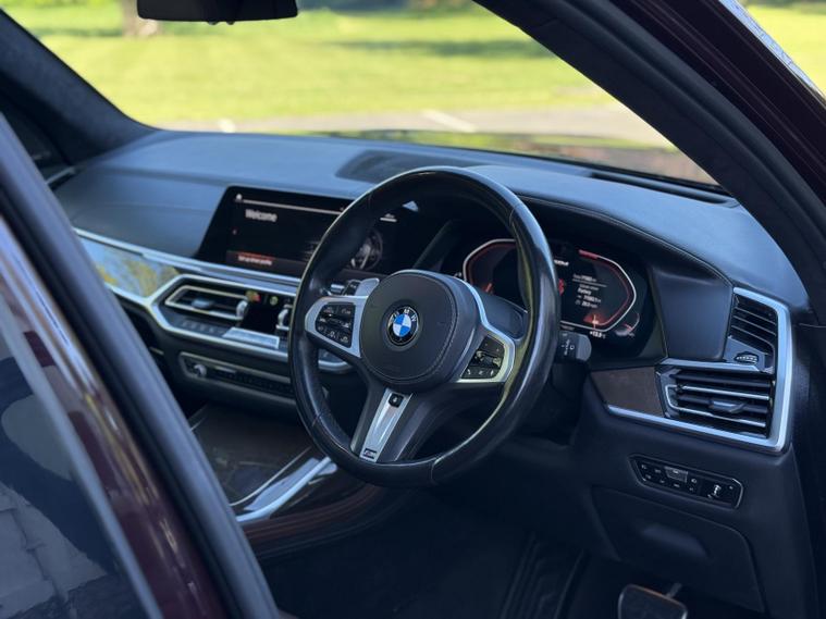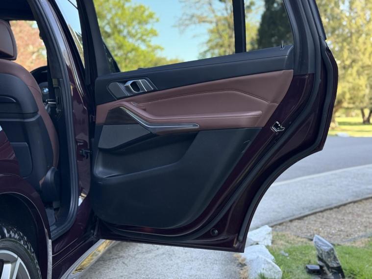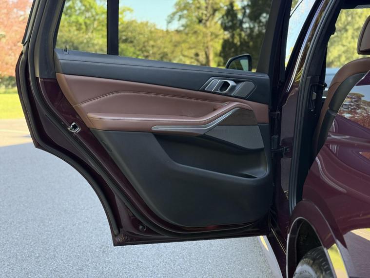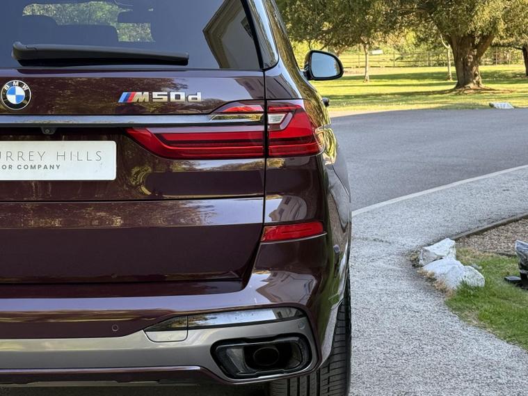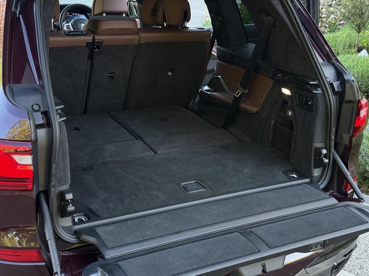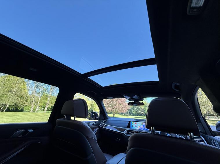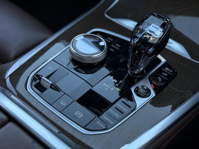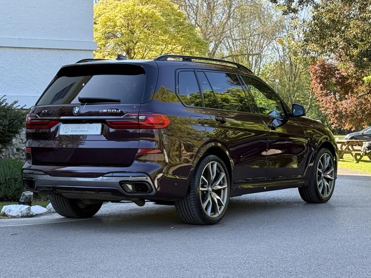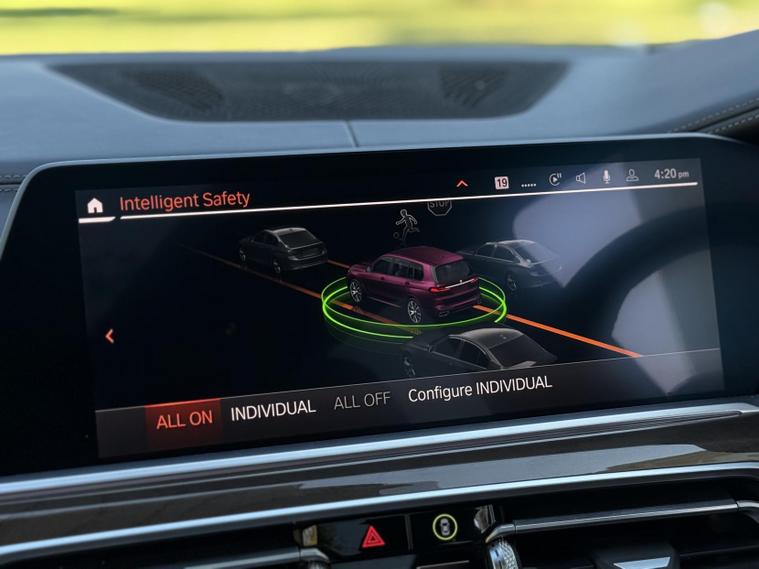 Standard specification includes Harman Kardon audio, panoramic glass sunroof, 22-inch M light alloy wheels, adaptive LED headlights, Parking Assistant Plus with surround view, BMW Live Cockpit Professional, gesture control, soft close doors, four-zone climate control and heated seats across the front and second row, along with full 7-seat configuration.