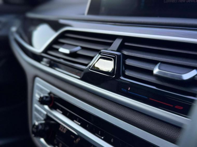 Draped in a sleek Black finish, this BMW 7 Series exudes sophistication and style, turning heads wherever it goes. The exterior is further enhanced by the Extended High Gloss Shadowline trim, adding a touch of elegance and distinction to its already commanding presence.