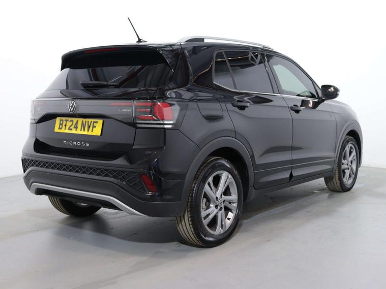 Introducing the stylish and versatile Volkswagen T-Cross 1.0 T-Cross R-Line TSI Semi-Auto 5dr. With only 26275 miles on the clock and just 1 previous owner, this sleek vehicle is in pristine condition. Finished in a sleek Black exterior, this T-Cross is sure to turn heads wherever you go.