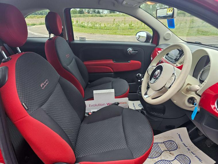 Finished in a striking Pasodoble Red, this Fiat 500 is sure to turn heads wherever you go. Its compact and chic design makes it ideal for navigating bustling city streets, while its vibrant colour adds a touch of flair to your everyday drive.