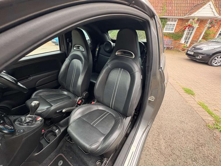 Abarth 500 in sleek Grey, With Black Leather, Air Con, Power Windows Electric Mirrors .