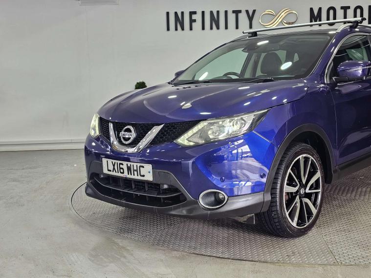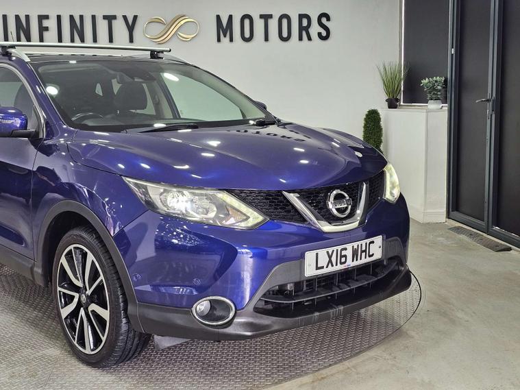 Infinity Motors present the Nissan Qashqai, a stylish and reliable SUV that is sure to turn heads on the road. This particular model is a 1.6 Qashqai Tekna DiG-T 5dr, finished in a stunning Blue colour that exudes sophistication.