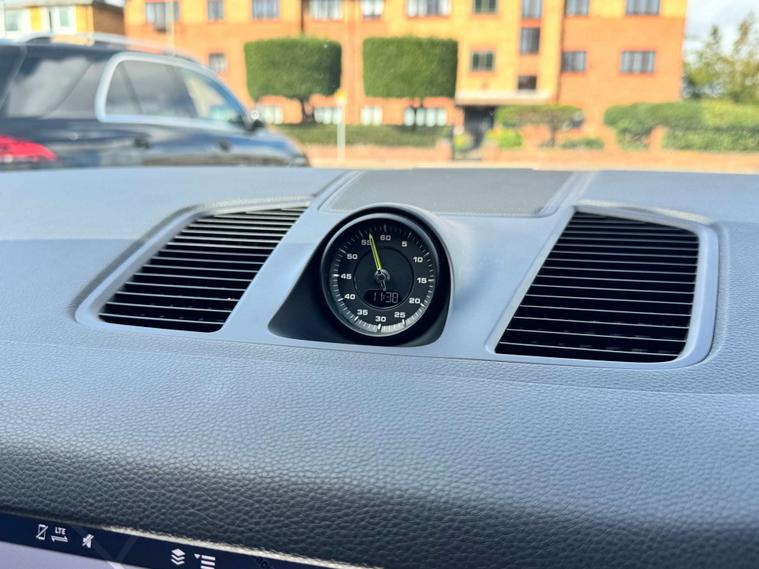 Step inside to experience the ultimate in comfort and technology. The interior boasts Smooth Finish Leather in Black, with Comfort Seats featuring a 14-Way Electric Adjustment and Memory Package for the driver. The Porsche Crest embossed on the front headrests is a subtle nod to the brand's heritage, while the heated steering wheel and front seat heating ensure comfort in all conditions.