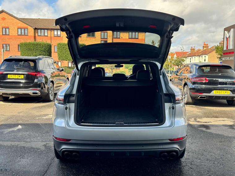 Finished in a stunning Dolomite Silver, this Cayenne is not just a car; it's a statement. Its sleek exterior is complemented by 21-inch Cayenne RS Spyder Design alloy wheels and an Exterior Package in Black High Gloss, ensuring you make an impression wherever you go. The Panoramic Roof System and Privacy Glass add an extra touch of sophistication, while the Black High Gloss Roof Rails provide both style and functionality.