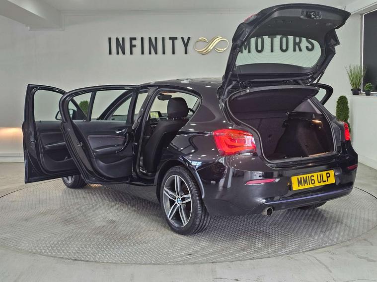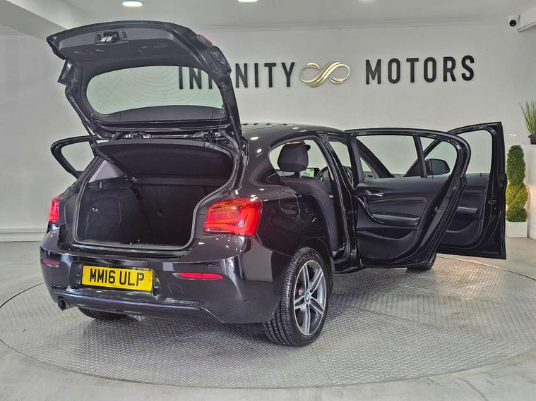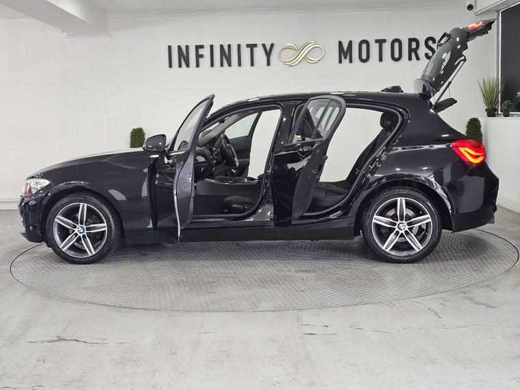 Infinity Motors presents the sleek and stylish BMW 1 Series 1.5 118I Sport 5dr. This stunning vehicle has had 2 owners and is finished in a striking Black colour.