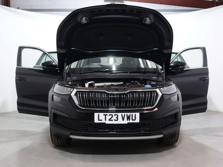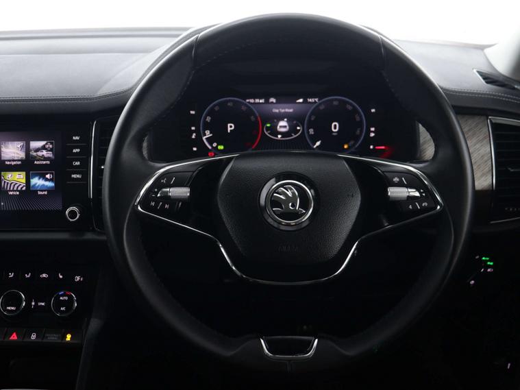 Finished in a sleek Black exterior, the Skoda Kodiaq exudes sophistication and elegance wherever it goes. Whether you're cruising through the city streets or embarking on a weekend adventure, this SUV is sure to turn heads and make a statement.