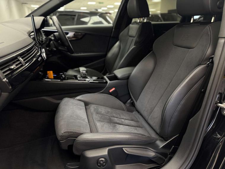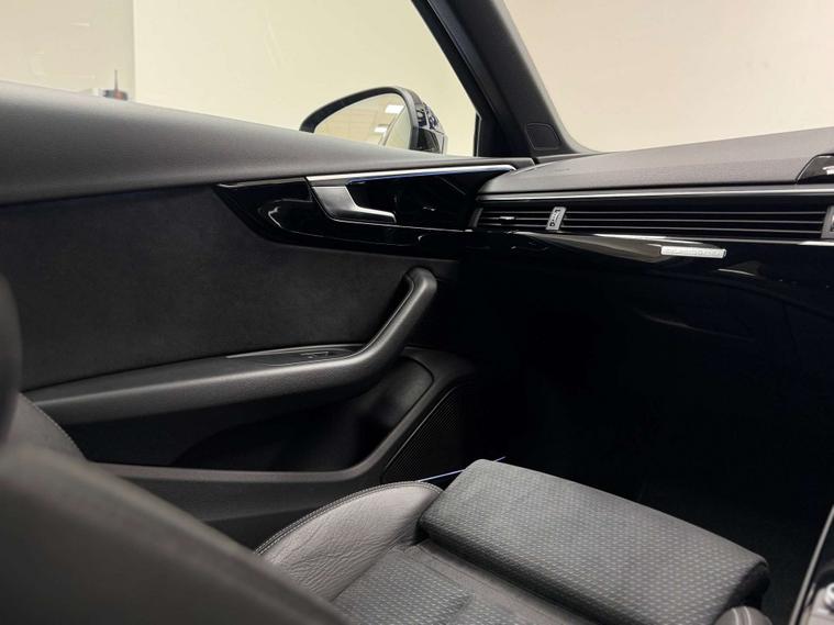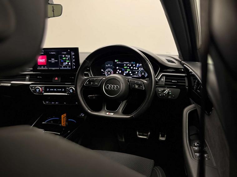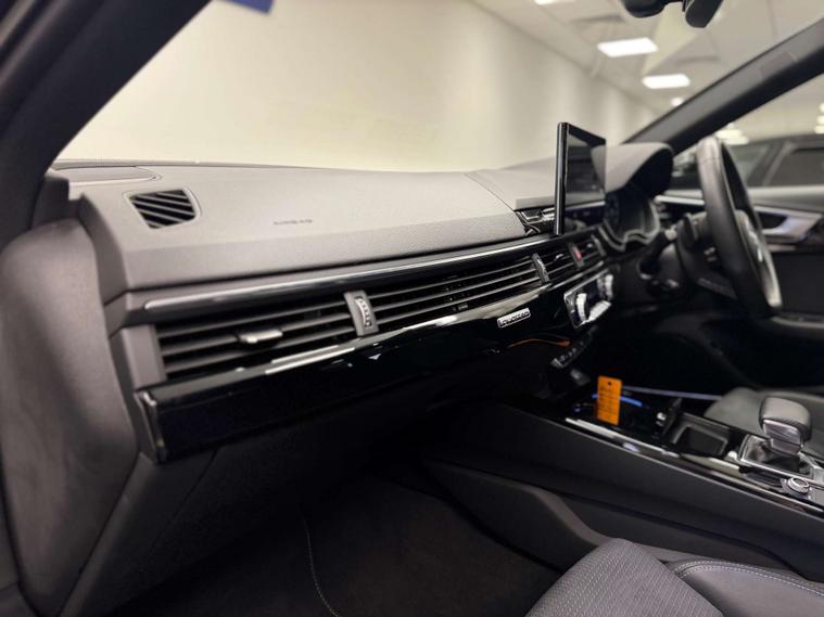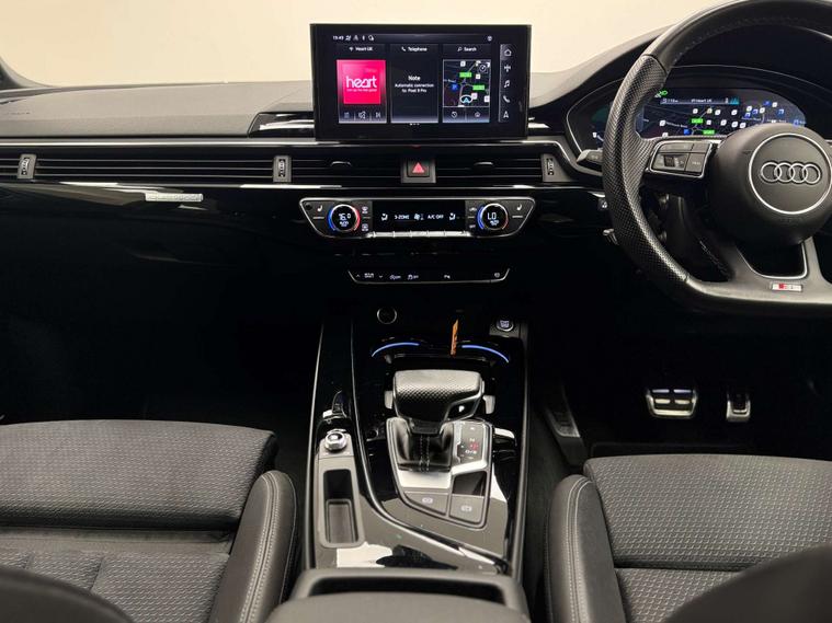 Dressed in a striking Mythos Black finish, the Audi A4 exudes an aura of elegance and power. Its sleek silhouette is complemented by the stunning 19-inch Alloy Wheels in a 5-Arm Rotor Matt Titanium Look, ensuring you make a statement wherever you go.