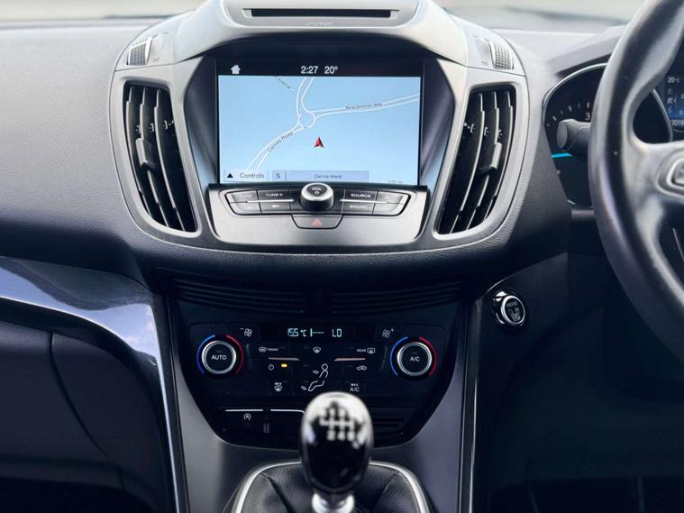 This 2017 Ford Kuga TDCi Titanium offers excellent peace of mind with a clear vehicle history check. This well appointed Titanium trim model is powered by an efficient 1.5 litre diesel engine, meeting Euro 6 emissions standards. Inside, you'll find comfort and convenience with Dual Zone Electronic Automatic Temperature Control, allowing you to set individual temperatures for driver and passenger. Access is effortless thanks to Keyless Entry, and the Ford DAB Navigation System with Ford SYNC3, including Bluetooth, keeps you connected and on the right path. Parking is made simpler with rear parking sensors, and the automatic halogen headlights with LED daytime running lights ensure you have clear visibility in all conditions.