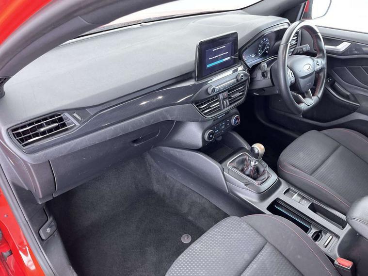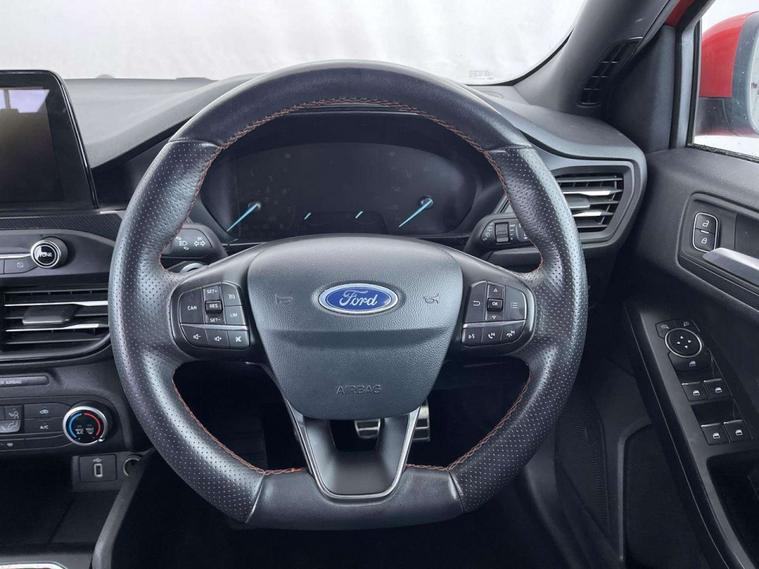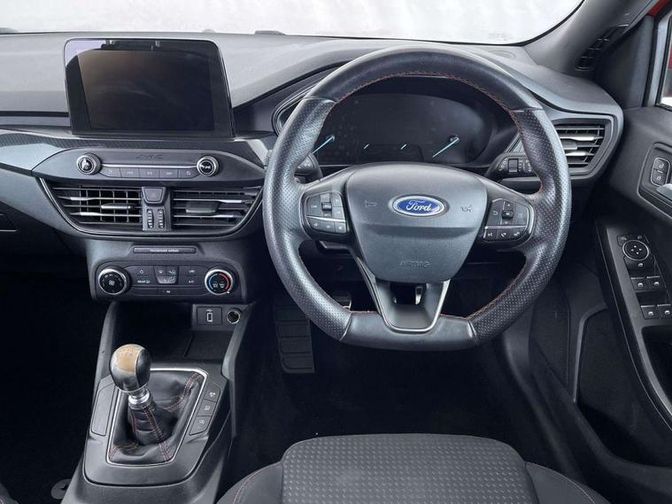 The Ford Focus 1.0T EcoBoost ST-Line is a sporty and efficient hatchback designed to elevate everyday driving. Powered by a 1.0-liter EcoBoost engine, it delivers punchy performance while maintaining impressive fuel economy, making it ideal for city commutes and longer trips alike. The ST-Line trim adds a dynamic edge, featuring a striking body kit, 17-inch alloy wheels, and a signature ST-Line grille. Inside, the cabin combines comfort with a sporty aesthetic, offering contoured sport seats, red stitching accents, and a flat-bottomed steering wheel. Agile handling and responsive steering enhance the driving experience, delivering a blend of practicality and excitement that's perfect for drivers who want more from their everyday car. Choose to buy and finance online (home delivery available) or collect in-store. Our vehicles come with a warranty, roadside assistance. All our car is HPI clear. Ask for more information on our extended warranties and Paint Protection. Check out this vehicle's inspection report on our website along with thousands of 5-star reviews.