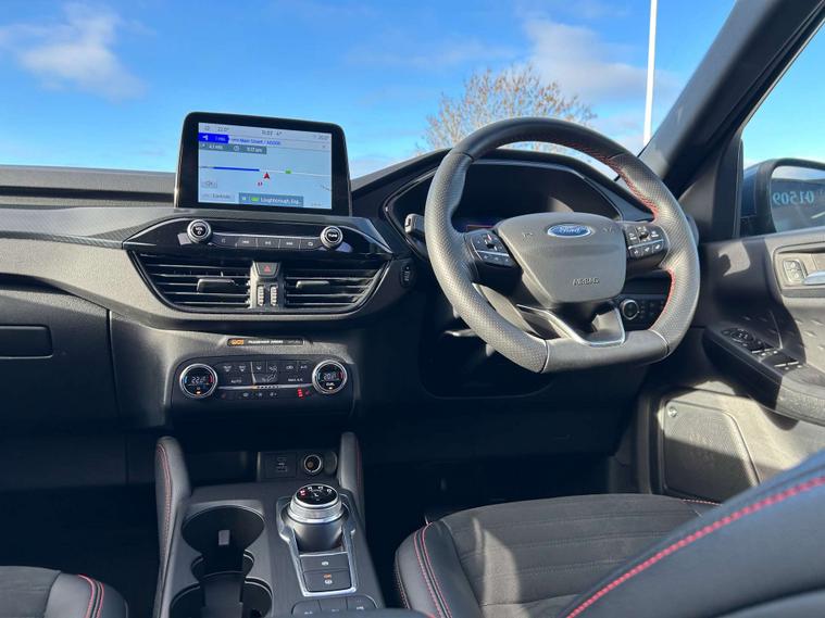 Further enhancing your driving experience, the Ford SYNC3 navigation system seamlessly integrates with Android Auto and Apple CarPlay, allowing for easy access to your favourite apps and music via Bluetooth. Parking is made effortless with front and rear parking sensors, and the convenience of wireless phone charging is also included. This particular Kuga ST-Line X also benefits from a low insurance group, indicating that running costs could be more affordable compared to similar vehicles.