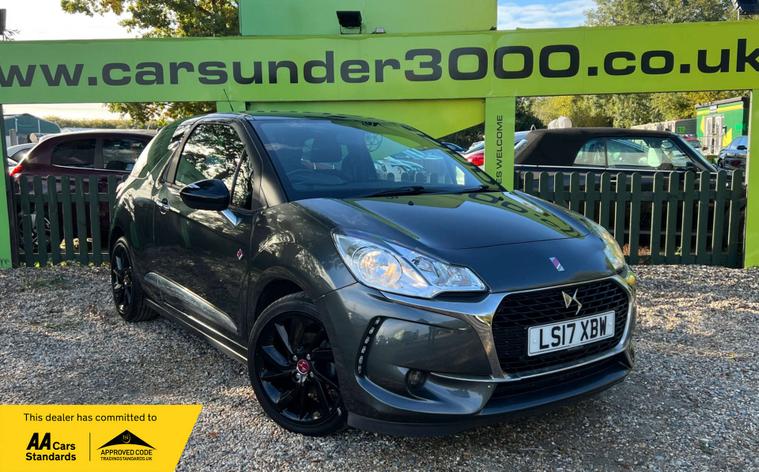 Cars Under 3000 introduce this DS 3 1.2 DS3 PureTech Performance Line S/S 3dr in Grey. Circa 44'400 miles from new and is in good condition for its age and mileage. This car has extras such as Bluetooth. ISOFIX Child Seat Anchoring Points. DAB - Digital Radio. 7in Touchscreen Satellite Navigation. Rear Parking Sensors. Cruise Control with Speed Limiter