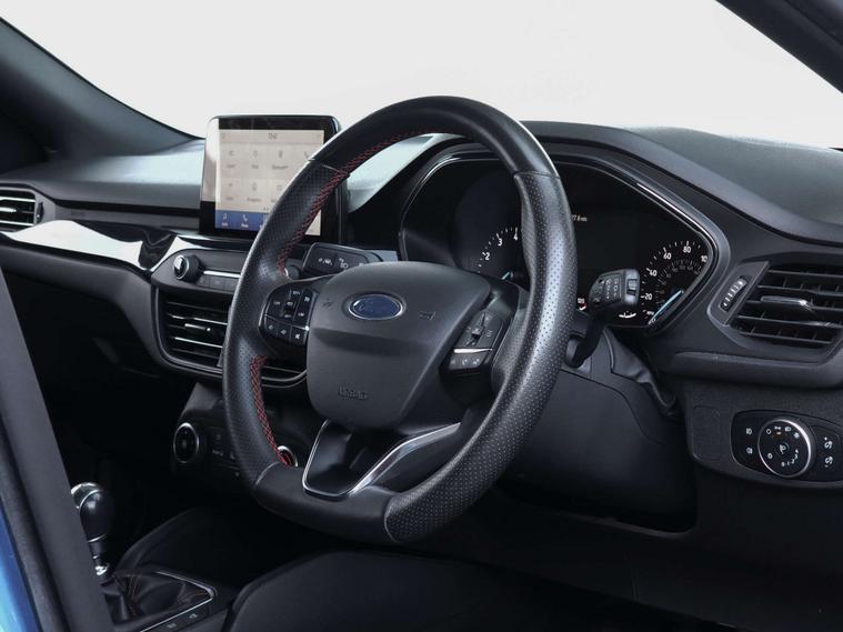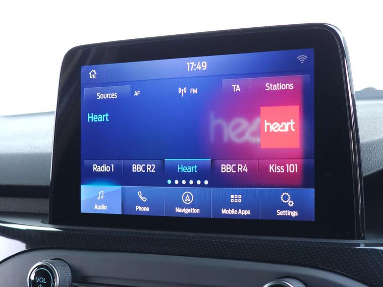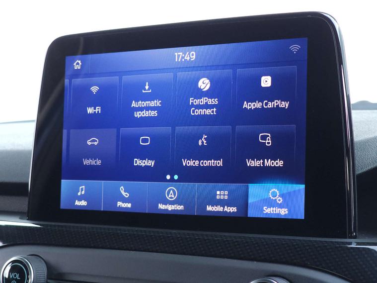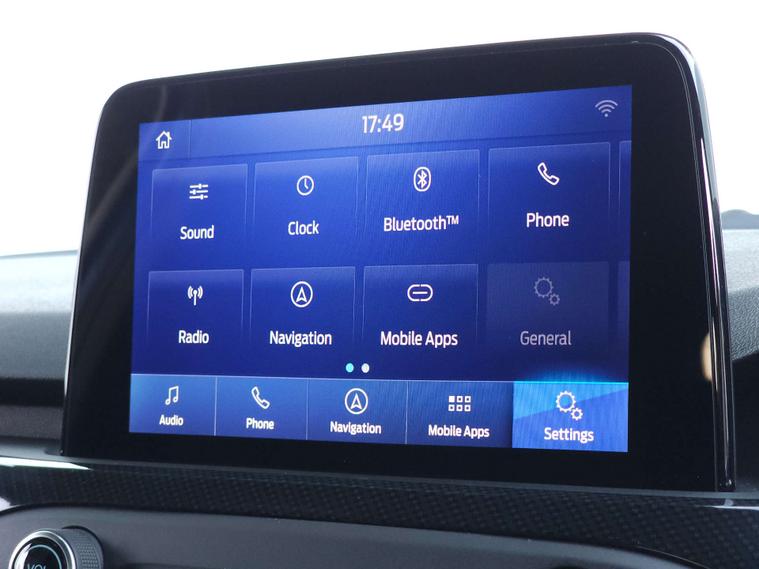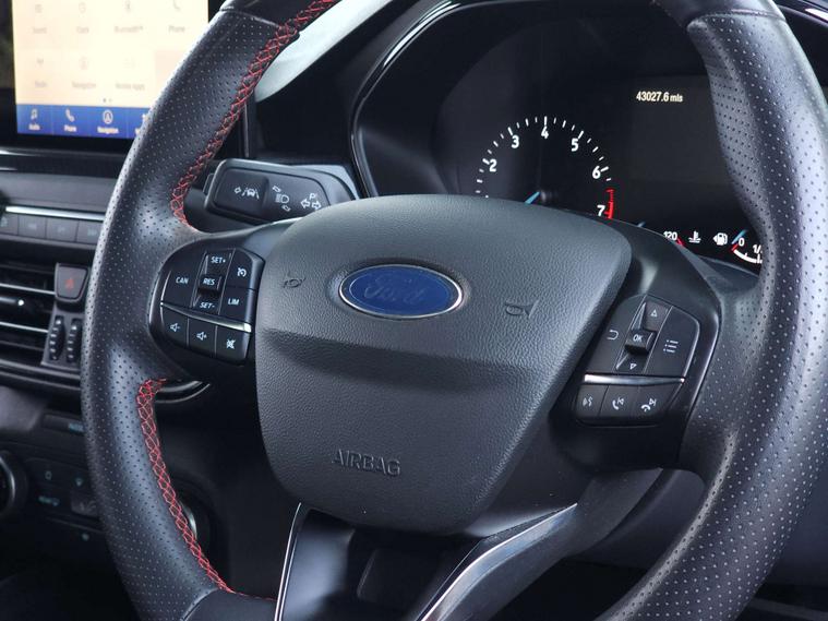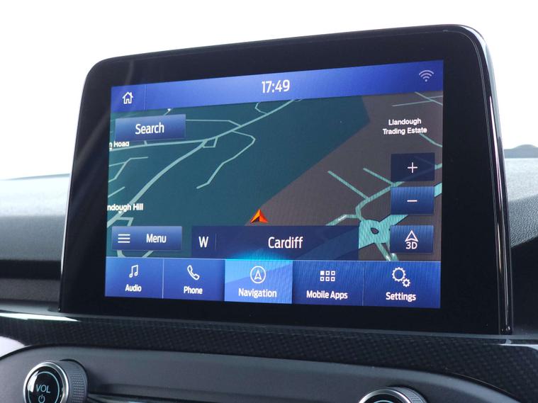 Equipped with St Line Design Pack, Ford SYNC 3 with Apple CarPlay, Android Auto, Navigation System & FordPass Connect, Bluetooth Interface with Audio Streaming, Front and Rear Parking Sensors, Cruise Control with Speed Limiter, 17in Rock Metallic Alloy Wheels, Electrically Operated Heated and Foldable Exterior Mirrors with Side Indicators, LED Front Fog Lights with Cornering Function, LED Daytime Running Lights, Hill Start Assist, Ford Key Free System which has Keyless Entry with Keyless Start.