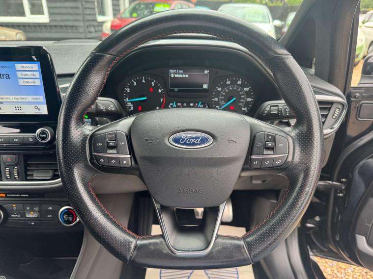 Inside, the Fiesta ST-Line T 3dr is a masterclass in comfort and style. The seats hug you like an old friend, and the dashboard is laid out with the precision of a Swiss watch. It's got all the mod cons you'd expect, and a few surprises that will make you feel like a kid in a sweet shop.
