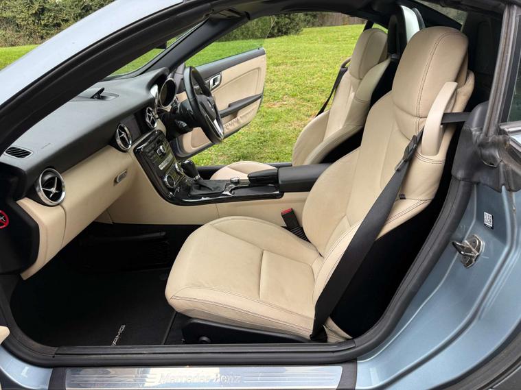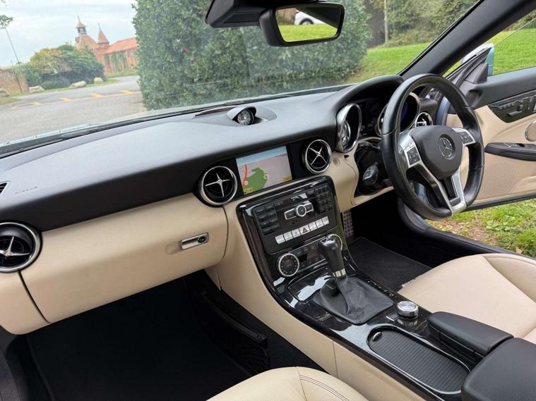 Finished in a sophisticated Silver colour, the Mercedes-benz Slk exudes luxury and class. The AMG Sport Edition 125 trim adds a sporty touch, making this car a true standout on the road.Harmon Kardon, Park distance control, Sat Nav, panoramic glass roof, Memory electric seats, Electric hood,